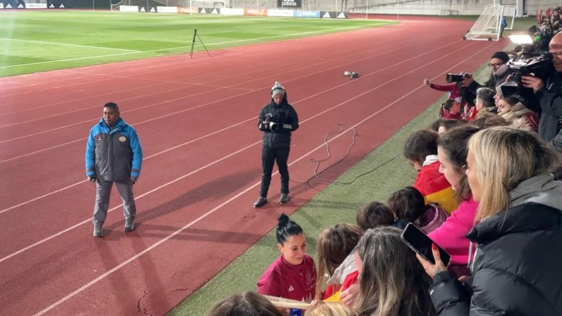 Muchos niños y niñas fueron los protagonistas al terminar la sesión dirigida por Montse Tomé. Al concluir, todas las jugadoras se acercaron a firmar a todos los que se habían dado cita en el campo de entrenamiento de la Ciudad del Fútbol de las Rozas. Una de las más aclamadas fue Jennifer Hermoso. La futbolista se dio un baño de masas con la toda la afición y fue una de las más reclamadas por los presentes. Tanto es así que provocó que una aficionada le dijese que le conocía desde sus inicios. Y ElDesmarque captó el momento. “Te conozco desde que estabas en el Rayo Vallecano”, dijo a la vez que le pidió un autógrafo. Jennifer Hermoso cumplió y tuvo tiempo para firmar. Ha llovido desde entonces. Jennifer Hermoso jugó en las filas del conjunto vallecano desde 2010 a 2013. La futbolista prepara junto al resto de sus compañeras los dos compromisos que de la UEFA Women's Nations League. Los partidos serán ante Italia en el estadio de Pasarón de Pontevedra el próximo 1 de diciembre y frente a Suecia en La Rosaleda de Málaga el 5 de diciembre. Dos partidos decisivos para lograr la clasificación de cara a los Juegos Olímpicos de París.