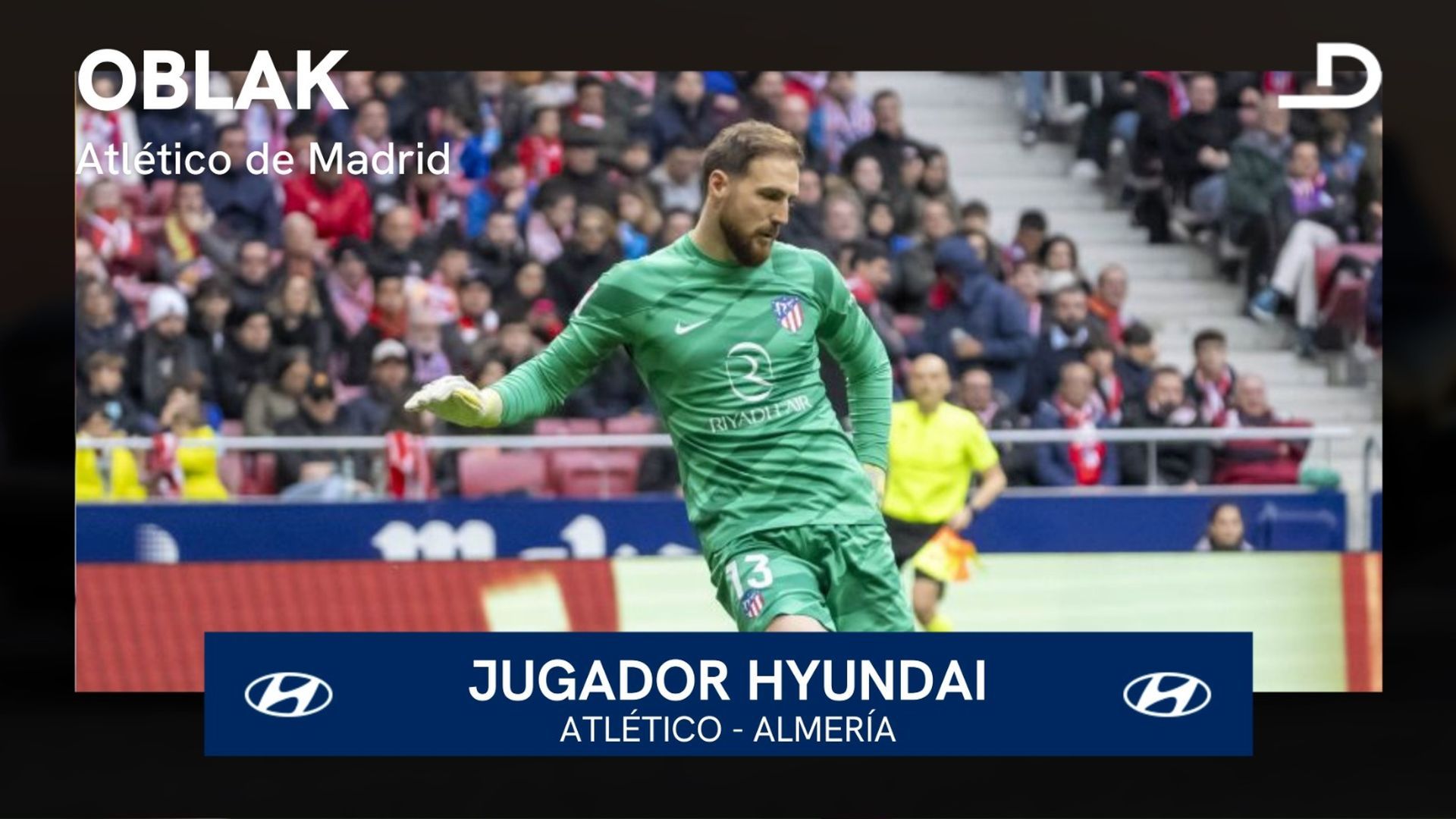 Jan Oblak, el Jugador Hyundai del Atlético de Madrid-Almería.