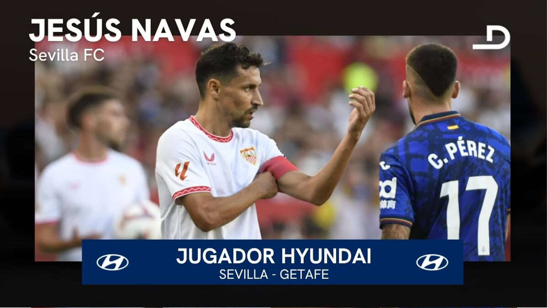 SevillaEl Sevilla FC ha conseguido ganar un partido después de mucho tiempo, la primera victoria de la temporada en LALIGA EA Sports, en un partido sufrido ante el Getafe CF, como no podía ser de otra manera. La victoria ha llegado gracias a un gol de leyenda, de una leyenda como Jesús Navas que ha acudido al rescate de su Sevilla en el momento en el que más lo necesitaba. Además, estuvo cerca de hacer el segundo y cuajó un partidazo hasta que fue sustituido. Una actuación que ha servido para que Jesús Navas sea el jugador Hyundai del Sevilla FC-Getafe CF.