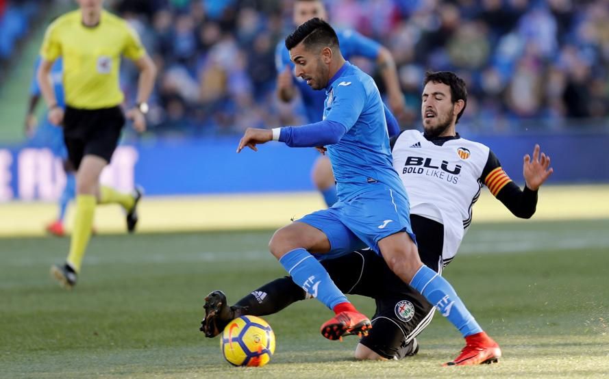 El Valencia CF recibió su propia medicina en Getafe y perdió su primer partido de Liga después de que el Getafe fuera mejor y, con un menos durante más de una hora lograra marcar de rebote el único gol del encuentro en el minuto 65. Los de Marcelino, que en ningún momento tuvieron la claridad de otros duelos, lo intentaron de todas las formas posibles, pero el conjunto local supo defenderse como gato panza arriba y dejar a los valenciansitas sin sumar por primera vez en toda la Liga. Lejos de acercarse al líder, que había empatado ante el Celta, el equipo no suma. Es un traspiés, nada más. Marcelino, desde la grada, echó mano de todo lo que tenía, tanto en la zaga -dónde eran baja Murillo y Garay- como en el medio, zona en la estrella Guedes no podrá ser alineada en un mes por lesión. Así, de inicio saltaron al Coliseum Neto; Montoya, Vezo, Gabriel, Gayà; Kondogbia, Parejo, Carlos Soler, Andreas Pereira; Rodrigo y Zaza. Los primeros minutos fueron de tanteo. Trabados, propios de dos equipos que juegan a lo mismo. Apenas el balón se acercó a las áreas. Una aproximación -mala- de Zaza y un tiro -peor- de Jorge Molina, fue el escaso bagaje inicial de un duelo en el que el Valencia comenzó como siempre. Esperando atrás, aguardando a su rival para ver si podía darle una dentellada a su rival. Los mediocentros eran meros espectadores de los pelotazos de una y otra defensa. Por eso, tuvo que ser a balón parado en el 16 el que abriera el tarro de las ocasiones valencianistas. Hasta en tres ocasiones lo intentó en la primera mitad el de Coslada. Su primer tiro, lejano, botó antes de llegar a Guaita y el valenciano tuvo serios problemas para desviar el balón a córner. En el 21, los mismos protagonistas, y esta vez el cancerbero de Torrent aceró a despejar de nuevo el tiro del capitán valencianista y, de nuevo en el 26, Parejo volvió a probar los reflejos de Guaita, sin éxito.