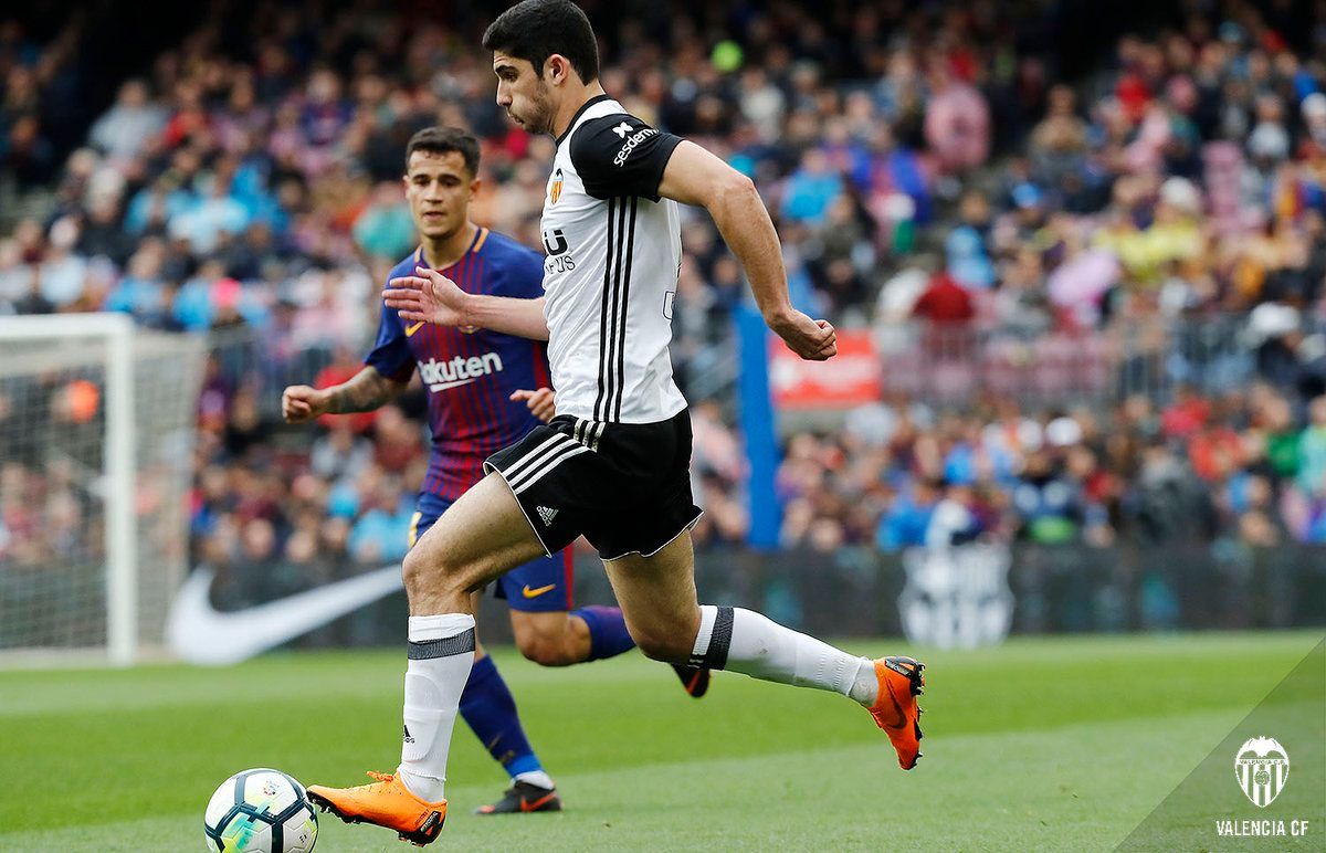 El Valencia CF se marchó del Camp Nou con una con una derrota ante el Barcelona por 2-1, tras un buen partido en el que fue esclavo de sus propios errores. El conjunto de Marcelino jugó bien, tuvo buenas ocasiones y tuteó al líder de la Liga durante muchas fases del juego pero, en este deporte, goles son amores y esos cayeron más rápido y primero del lado culé. Por eso, cuando llegó el de Dani Parejo en el minuto 86, ya fue demasiado tarde para reaccionar. Los de Mestalla pusieron las ganas, las ocasiones y la velocidad durante muchos minutos, pero el Barcelona demostró que tiene más pegada y eso, en el Camp Nou, es imprescindible si quieres llevarte algún botín El Valencia era consciente de que la ocasión era inmejorable para echarle mano al FC Barcelona y desde el principio fue a por el partido. ¿Los argumentos esgrimidos? Los de siempre. Presión adelantada y la calidad y la verticalidad de los Rodrigo, Guedes y Kondogbia. Los tres están a un nivel top de Champions. Al mediocentro no se la quitan, el punta está fino y el extremo luso tiene una clase y arma la pierna con una facilidad pasmosa. Tanto que en el 4' Ter Stegen ya había tenido que volar para sacar una pelota que buscaba la escuadra.