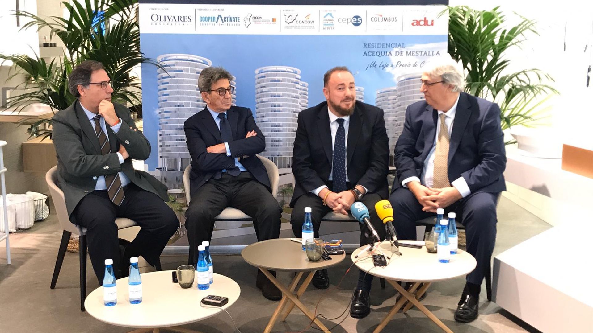 En torno a 230 viviendas entre señalizadas y adheridas ha explicado José Luis Santa Isabel de ADU, pero "no podemos presionar a nadie. Que se adhieran a la velocidad que sea. Somos conscientes de que está 11 años parados y hay escepticismo en el mercado. Somos conscientes. El valenciano es mucho de tocar y estamos seguros que, a medida que se consolide, la sociedad valenciana se va a volcar". El número total de pisos aún no se sabe pero sí anunciaron que hay ya 69 modelos distintos. "El 31 de marzo se cumple el principio del fin del problema del Valencia CF y a partir de mayo junio crearemos el club de la Acequia de Mestalla para que durante los dos años hasta que empiezan las obras para que la gente se relacione, se conozca. Es una iniciativa muy social, muy de una cooperativa", anunció Santa Isabel Por su parte Javier Barrachina, presidente de los cooperativistas -inscrita hace dos días en el registro de la Generalitat- se mostró seguro que "dentro de poco se firmará el acuerdo con el Valencia CF y se hará realidad el trabajo y el esfuerzo de muchas personas. Será muy bonito para Valencia". Lo ha hecho en un acto junto a Porcelanosa, en el que han presentado un acuerdo en el que incluirá en su memoria de calidades más elevada de la marca cerámica valenciana. En él estaba presentes el presidente de CONCOVI (Confederación de Cooperativas de España); José Luis Santa Isabel, Presidente de Adu Mediterráneo, que es quien está gestionando la compra del estadio y Héctor Colonques, presidente de Porcelanosa que estaba orgulloso de que la iniciativa "sea valenciana y una cooperativa. Va a ser un hito en el sector inmobiliario en Valencia. Son muy responsables" ha dicho en referencia a los que dirigen el proyecto y ha invitado a todos los cooperativistas a ver "cómo se fabrica lo que están poniendo en los pisos. Valencia es nuestra ciudad y esto está en el corazón de Valencia".
