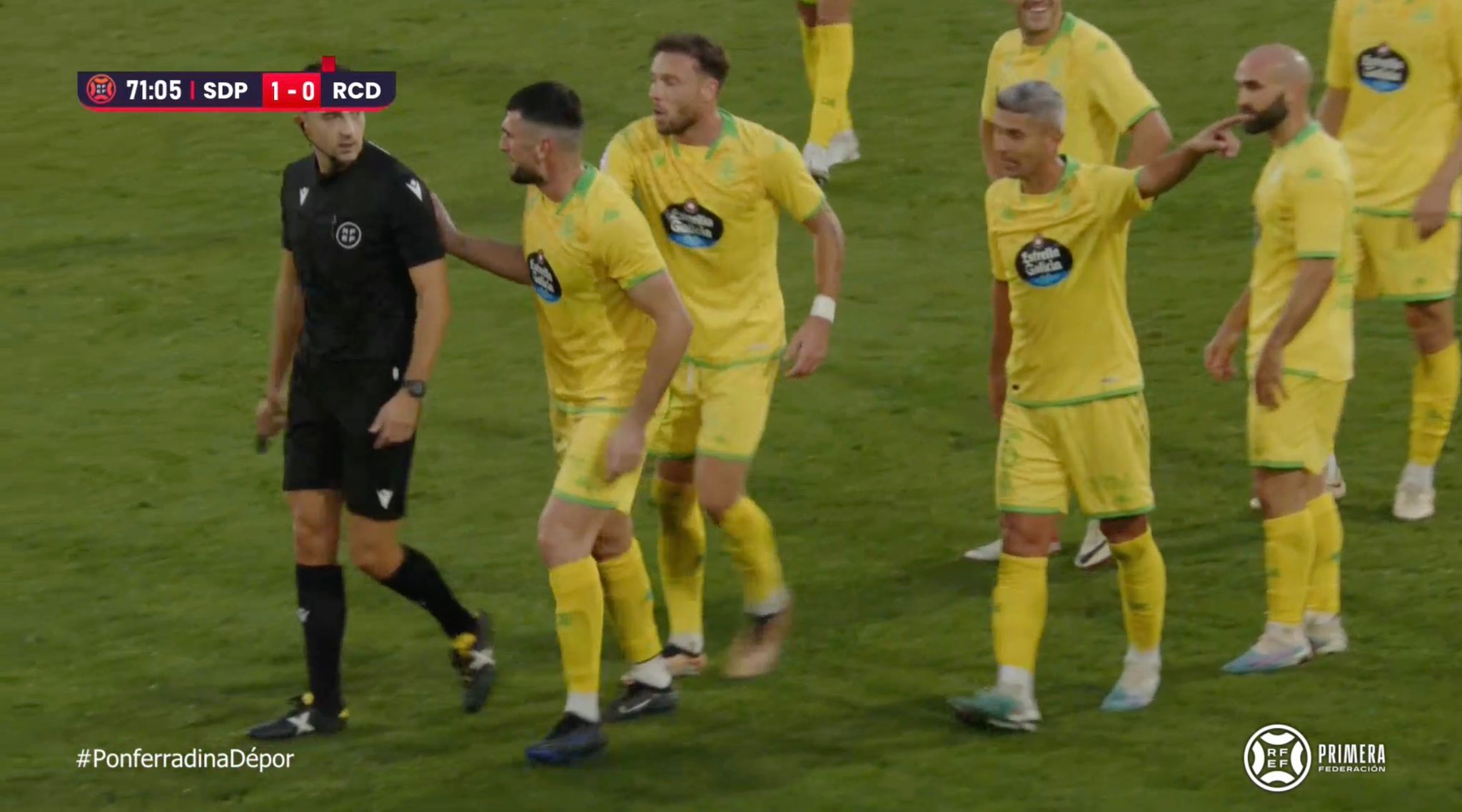 Árbitros. "Me siento plenamente identificado porque sé cómo se sienten los jugadores con esa sensación de que, entendiendo el nivel de medios que tienen los árbitros en esta categoría es el que es, sí que hay un grado de nerviosismo de decisiones raras en los partidos del Dépor. Son sensaciones extrañas y los errores son determinantes. Estamos buscando una explicación y se está trabajando de ello internamente. Hemos elevado quejas y estamos en la búsqueda de esa explicación. Como aficionado sería el primer en sacar un comunicado y montar en cólera, pero la única manera es que internamente nos escuchen". El nerviosismo de los trencillas con el Dépor. "La sensación que yo tenía era que ellos veían con más tensión el partido del Dépor y sobre todo Riazor. Hay una predisposición de ellos más nerviosa. Inconscientemente acabas viendo cosas que no son las que están pasando".