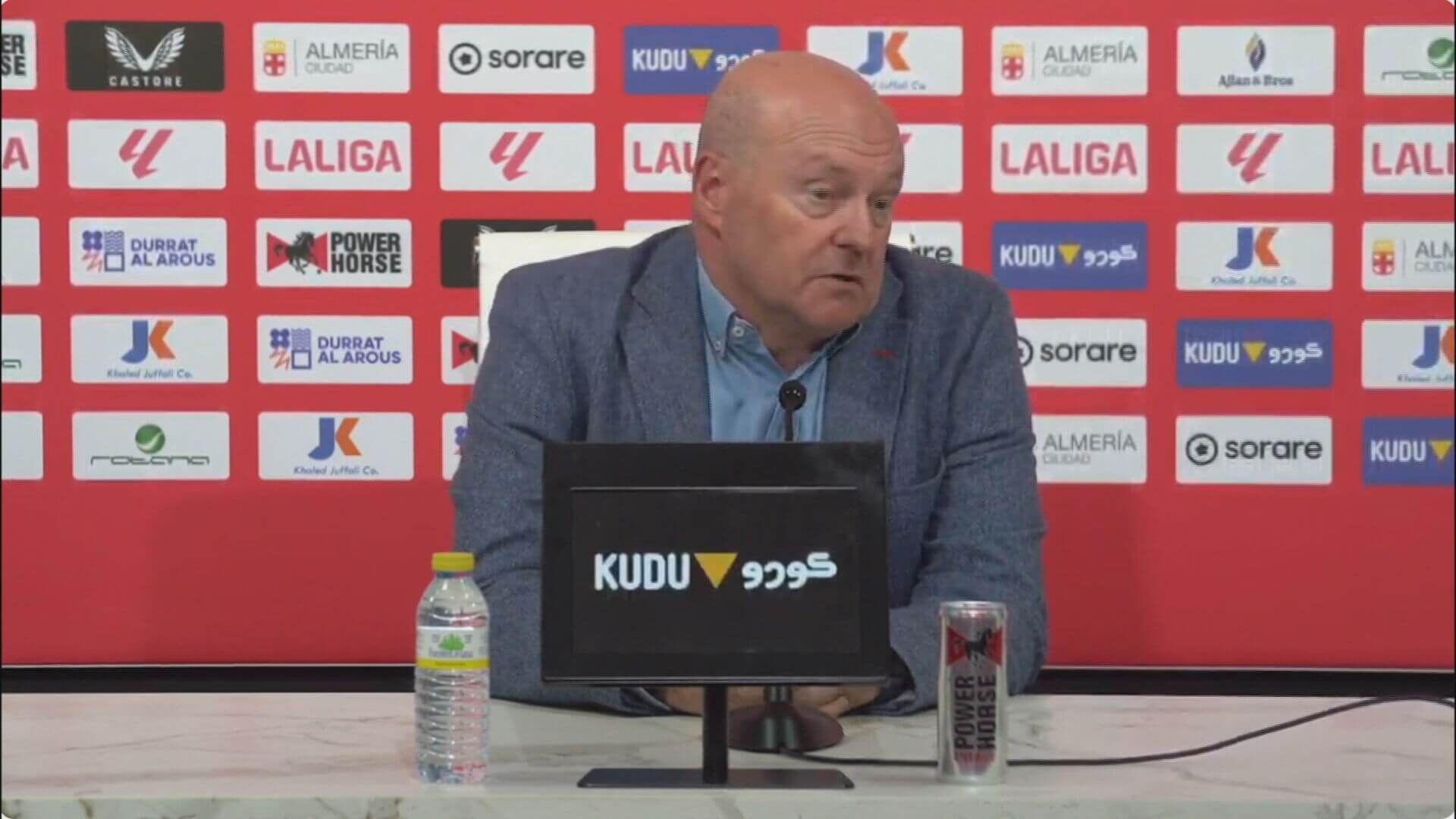 El técnico madrileño salió a rueda de prensa a analizar el siguiente partido del Almería. Será contra el Osasuna y Pepe Mel no podrá contar con Gonzalo Melero ni para este ni para los siguientes tres partidos. Así de dura ha sido la sanción tras la denuncia del Departamento de Integridad de la Federación Española de Fútbol por sus palabras tras lo ocurrido en el Santiago Bernabéu contra el Real Madrid. El entrenador habló sobre la sanción y fue muy crítico con la libertad de expresión en nuestro país. Explicó que, aunque su jugador cometió una ingenuidad, esta es la realidad que tienen que vivir el mundo del fútbol hoy en día. Comparó su situación con la que se vive en el Congreso de los Diputados o en la prensa, diferenciando la libertad de expresión que hay en los dos mundos. En el vídeo que encabeza la noticia, las palabras de Pepe Mel sobre la sanción a Gonzalo Melero.