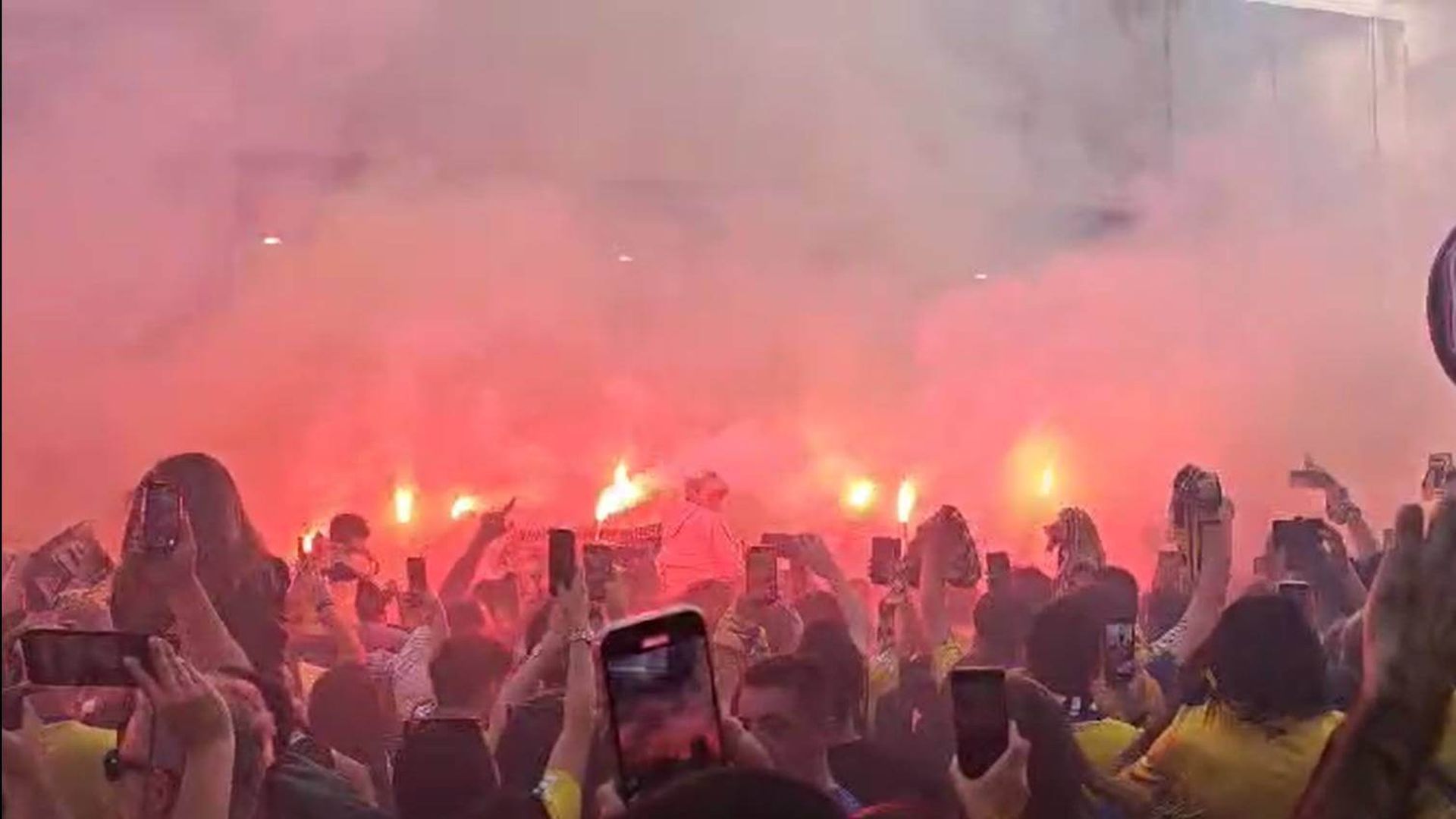 Cádiz-Barcelona: Espectacular recibimiento de la afición del Cádiz en la llegada de la plantilla