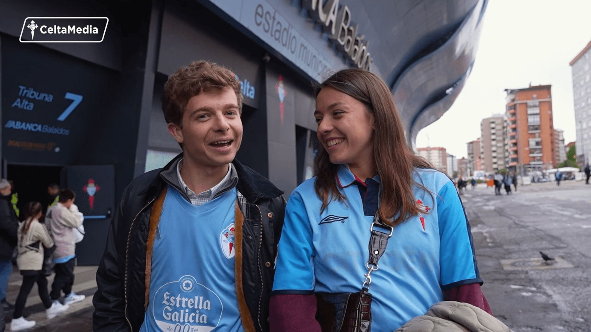 "Es la primera vez que vengo, he ido a ver el Cádiz con la camiseta del Celta. Lo he visto dos o tres veces en mi vida, lo sigo ya desde hace 10 años. Empecé a verlo, me gustaba y veo todos los partidos. Ha cuadrado los horarios, tenía un día de fiesta en mi trabajo y me lo ha regalado ella, ha sido un detallazo", cuenta el chico sobre su vida y sobre el viaje a Vigo para el partido.