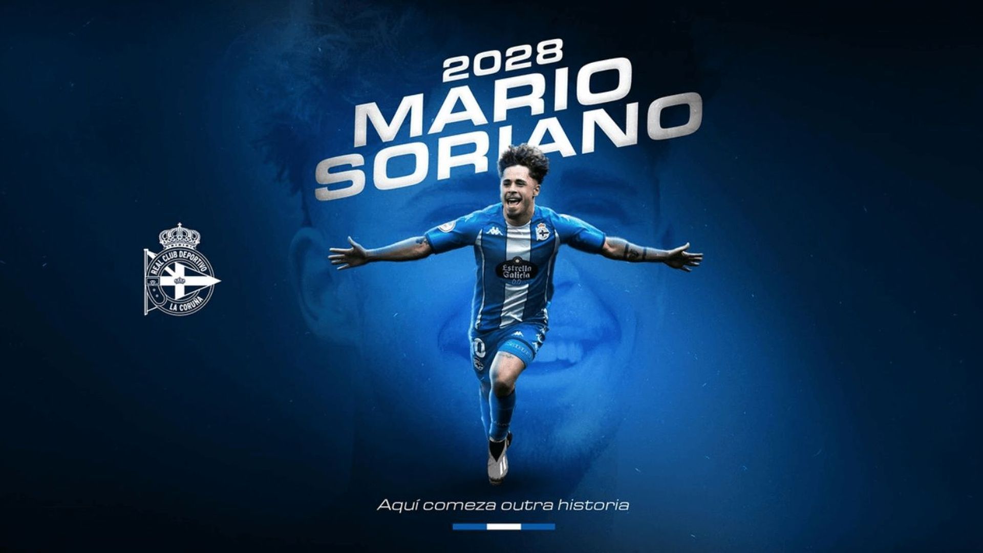 Este ha sido el comunicado del Dépor para anunciar la renovación de Mario Soriano: Mario Soriano Carreño (Alcalá de Henares, Madrid, 22 de abril de 2002) renovó su contrato con el Dépor por cuatro temporadas, hasta junio de 2028, con opción a una campaña más por goles. El centrocampista alcalá llegó al Dépor cedido por el Atlético de Madrid a principios de la temporada 2021-22 y al inicio de la siguiente fichó por dos campañas, ya en titularidad. En el curso recién finalizado, el segundo de ese contrato, jugó cedido en la SD Eibar, equipo con el que disputó 45 partidos oficiales (41 como titular), marcó 3 goles y dio 4 asistencias en Segunda División. Además, disputó el playoff de ascenso a Primera. En sus dos temporadas como jugador blanquiazul, 2021-2022 y 2022-2023, Mario Soriano participó en 71 partidos, 58 de ellos en el once inicial. Marcó 13 goles y dio 9 asistencias.