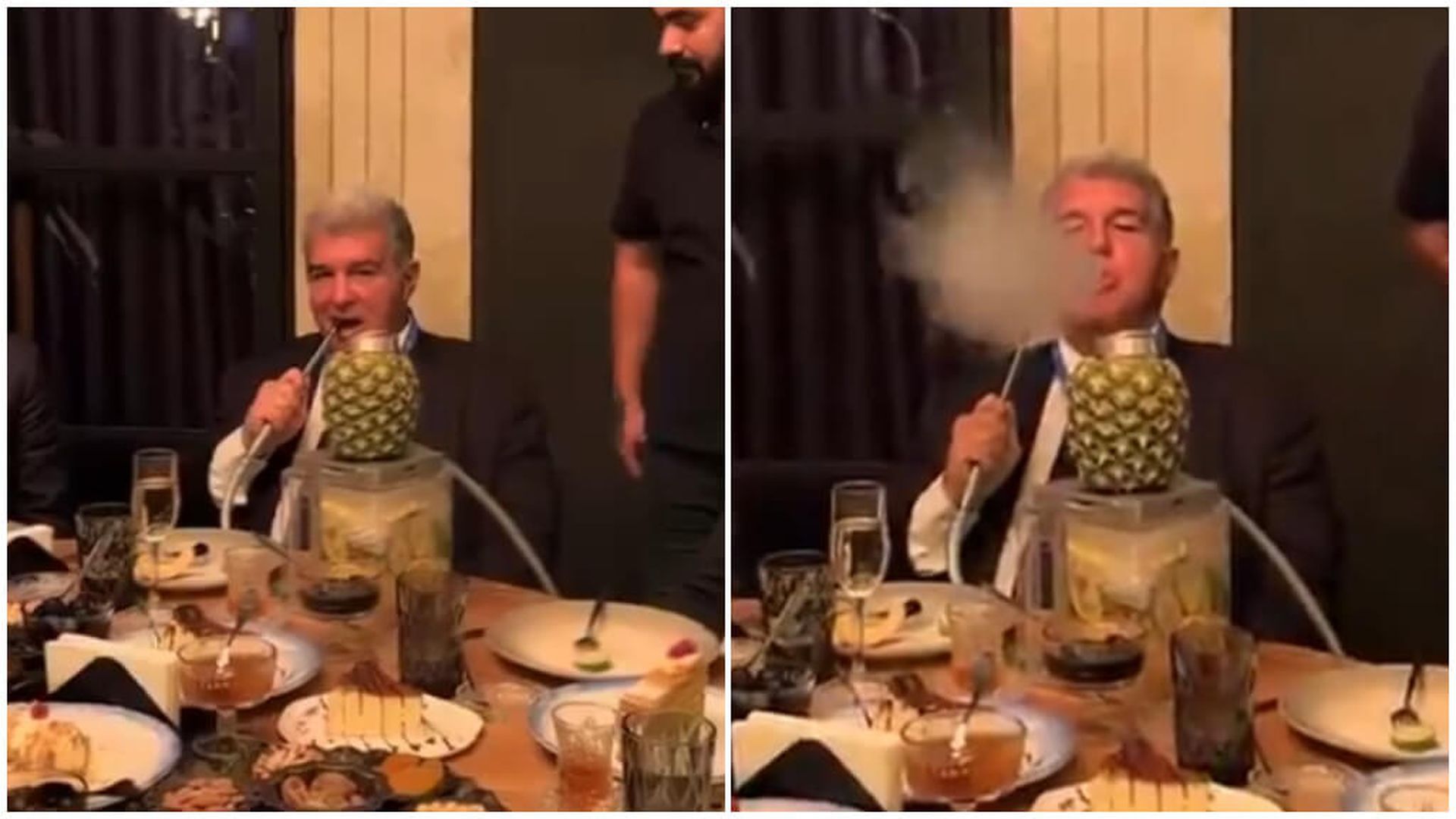 La expedición culé está conformada por varios nombres propios importantes en la escena del FC Barcelona: Joan Laporta, presidente del FC Barcelona; Xavi Puig, máximo responsable de fútbol femenino; Joan Solé, responsable del fútbol base y categorías inferiores; y Alejandro Echevarría, persona de confianza del presidente, entre otros, como señala el diario 20 Minutos. Todos ellos han aprovechado este parón de selecciones para viajar, hacer negocios, pero también para relajarse. Tras una visita a la capital de Mongolia, Ulan Bator, los directivos blaugranas, con Joan Laporta a la cabeza, se desplazaron a Bakú. Allí se celebra una convención de la ONU sobre el Cambio Climático, a la que han asistido. Tras estos eventos protocolarios e institucionales, hubo tiempo para una buena cena típica. Con los postres aun sobre la mesa, Laporta se atrevió a pedir una shisha. En el vídeo, que ya se ha hecho viral en redes sociales, aparece el presidente con una shisha aparentemente de sabor a piña, bastante llamativa y típica del país.