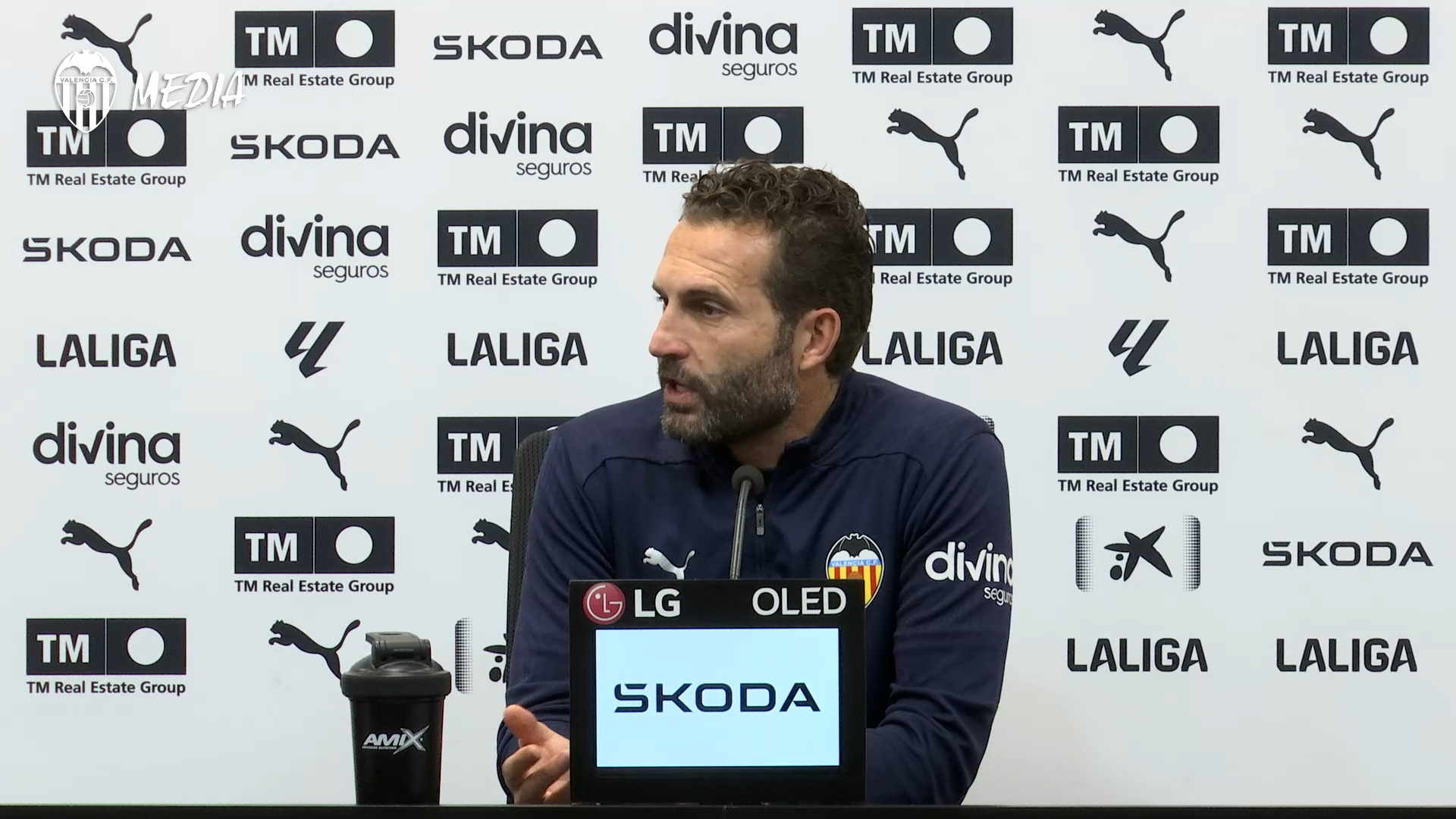 ¿Ha hablado Rubén Baraja con Corona para el mercado de enero? Cuando llegue, hablaremos. Lo único que nos dije es que había una autorización para fichar un lateral derecho por Thierry. Ya os responderé cuando empieza. Sólo pienso en el Espanyol. El equipo no funciona ofensivamente Tratamos de que los centros al área y que lleguemos mejor tras 62 centros. En ese último tercio de campo, elegir mejor los últimos pases. Es lo que tratamos de mejorar e insistir porque no somos precisos en el último pase y en la finalización. Insisto en que hagan uno contra uno, que rematen con fe, todo lo que puedo hacer como entrenador, lo hago ¿Cómo está el grupo de confianza? ¿Qué tal es el Espanyol? El Espanyol es un equipo que corre muchísimo, corre bien a los espacios y sus mejores resultados son en casa. Tenemos que tratar de imponernos en el juego y el resultado. Los jugadores están concentrados al margen de los comentarios Rivales directos, ¿sólo vale ganar? Siempre vamos a buscar los tres puntos, pero es evidente de que es la forma más rápida de acercarnos al objetivo, pero a veces los partidos se ponen de una manera. Por ejemplo, el día del Rayo o del Valladolid hubiera sido positivo. Lo otro es que genera que gran partido es una final. Hay otros equipos que empatan y lo celebran y nosotros tenemos que pedir perdón, pero es normal este club es muy grande. Todo el año tendremos que competir por el objetivo durante todo año. Si gano o pierdo es el fin del mundo y eso es difícil de gestionar. ¿Planteamiento kamikaze? Eso solo cuando es la situación límite, es importante este partido pero tenemos que afrontarlo sin volvernos locos. Si te da para ganarlo, pues mejor. ¿Entiendo que la gente Entiendo todo, absolutamente y entiendo que dejen de confiar en ti. Pero a mi me mandan mensajes y me encuentro gente por la calle diciendo "vamos, que lo vamos a conseguir" y gente relacionada con el club me dicen que ánimo. Me quedo con eso. Aquí ha habido entrenadores que han estado en situaciones de gran dificultad y luego han ganado títulos ¿Por qué agarrarnos a eso? Paralelismo ahora con su llegada La otra vez fue mucho más agónica. Ibas descontando los partidos y encontré situaciones en el camino dentro de creer y empujar que ahora no. Este vestuario siento más empujar y más querer que cuando llegué. Son situaciones potentes, la primera fue morir o vivir y ahora estamos en una situación dificilísima y tienes que evitar equivocarte. Aquello fue más agónico y ahora pienso que hay más tiempo. Ahora hay mucha sensación de pertenencia. ¿Te has sentido fuera? Las derrotas marcan el devenir de un entrenador No depende de mi, me siento dentro. No depende de mi. Si el Valencia CF piensa que no debo ser el entrenador, es fácil, me lo dices y ya está. No ha pasado nada que me haga pensar lo contrario. Los números son malos, pero no significa que no se puedan cambiar. No tengo tanto ego, me preocupa el partido del Espanyol. Soluciones ofensivas En el último tercio es dónde está la diferencia del fútbol y esto no es fácil de lograr. Somos equipo organizado, con intensidad, energía, no nos deshilachamos. Es el más difícil en el fútbol y cuando no llevas una dinámica buena... Intento motivarlos pra que crean que pueden llegar