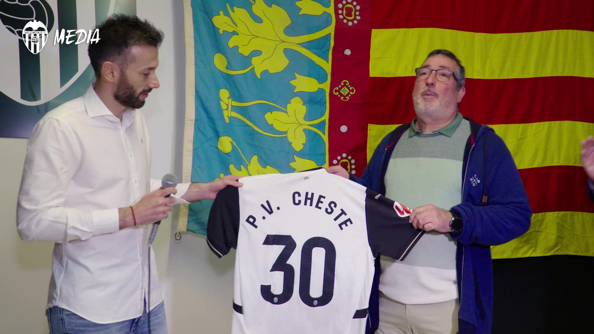 "Es una alegría estar en la peña valencianista de mi pueblo y hacerlo como entrenador del Valencia CF es un momento especial", comentó el técnico natural de Cheste a modo de despedida.