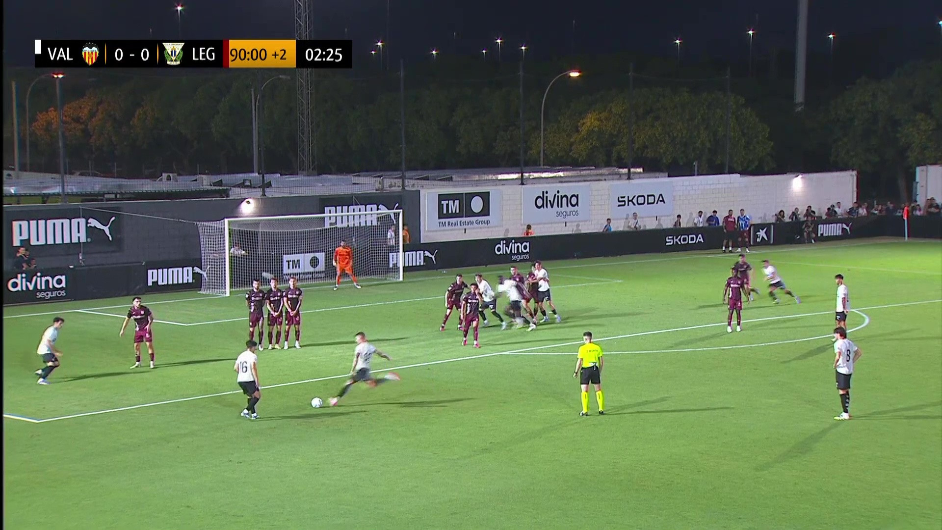 El técnico valencianista apostó por un once titular con Julen Agirrezabala como gran novedad y muchos de los jugadores que deberán llevar el peso del equipo en LALGIA pero lo cierto es que el Valencia volvió a mostrarse ramplón, con poca llegada, falto de recursos tácticos para doblegar al Leganés que, con un poquito de intensidad, controló sin demasiados problemas el choque. Cierto es que el Valencia tuvo una muy buena ocasión que André Almeida sacó del campo y ya al filo del descanso Hugo Duro perdonó de forma incomprensible. El más destacado de los valencianistas fue el joven mediapunta canterano Pablo López.