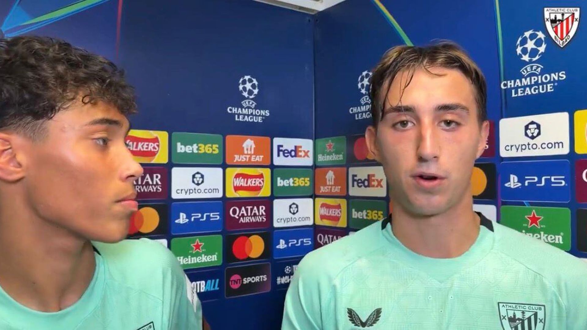 Ambos cachorros comparecieron en los medios oficiales del club rojiblancos. Hierro rompió el hielo compartiendo sus primeras sensaciones: "Una sensación inimaginable. Yo creo que tanto él como yo desde pequeños hemos estado juntos en algunas situaciones, íbamos en el autobús juntos, y vernos en esta situación y escenario... y la Champions que es un sueño para nosotros, ha sido una locura". Selton, en la línea de su compañero, aún no se lo creía: "Una alegría terrible. Sobre todo también porque estaban mis compañeros viendo el partido y he podido compartir la alegría con ellos. Una pena el resultado porque venimos de una mala racha y tenemos que darle la vuelta". Fue entonces cuando el joven y espigado delantero agradeció al Athletic su apuesta por la Filosofía. Asier Hierro considera que lo que hace el club rojiblanco es un regalo: "La Filosofía del Athletic por eso es única. Estos momentos son los que regala el Athletic, para nosotros dos y para cualquiera que haya debutado, ya sabe que es una locura. Y la alegría que te produce es increíble".