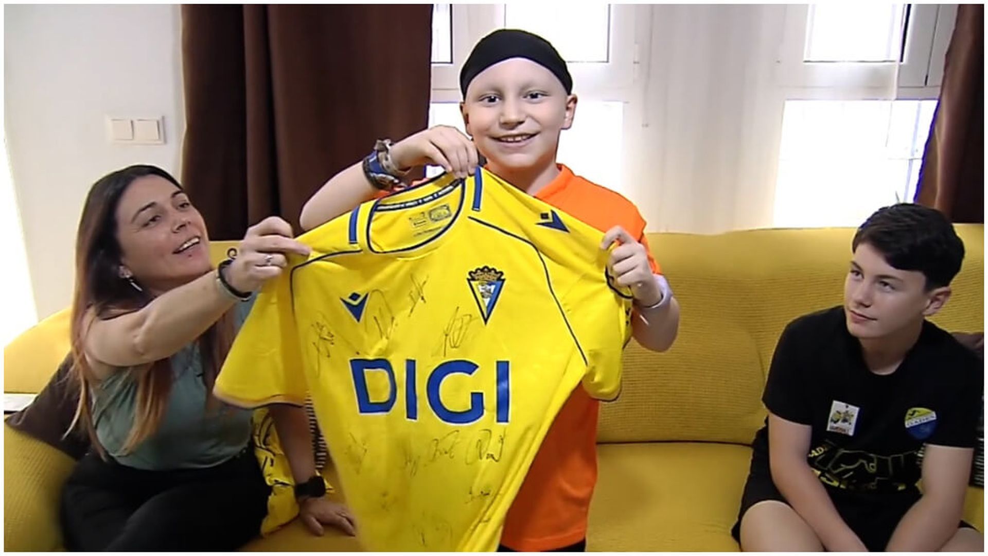 Lucas tiene solo ocho años, pero su amor por el Cádiz CF se ha convertido en su mayor motor en la lucha contra el cáncer. Cada mañana, su habitación en la planta de oncología infantil se llena de vida cuando su médico, el doctor Quiroga, le pone el himno del equipo amarillo. La música, las palmas y los gritos de “¡Cadiz, oe!” han transformado su rutina en un ritual de energía y esperanza. Nuestro compañero Tito González ha estado con él y su familia para ver como se vive esa alegría cadista. Su historia ha conmovido a toda la afición y al propio club. Al enterarse, los jugadores del Cádiz no dudaron en mandarle vídeos de ánimo y una camiseta firmada por toda la plantilla. En los mensajes, futbolistas como Álvaro, Izar o el portero Abigil le dedicaron palabras de aliento y admiración: “Tú eres un titán, más que yo”, le dijo uno de ellos. Además, el club ya ha invitado a Lucas y a su familia, a visitar el estadio y vivir un partido desde dentro.