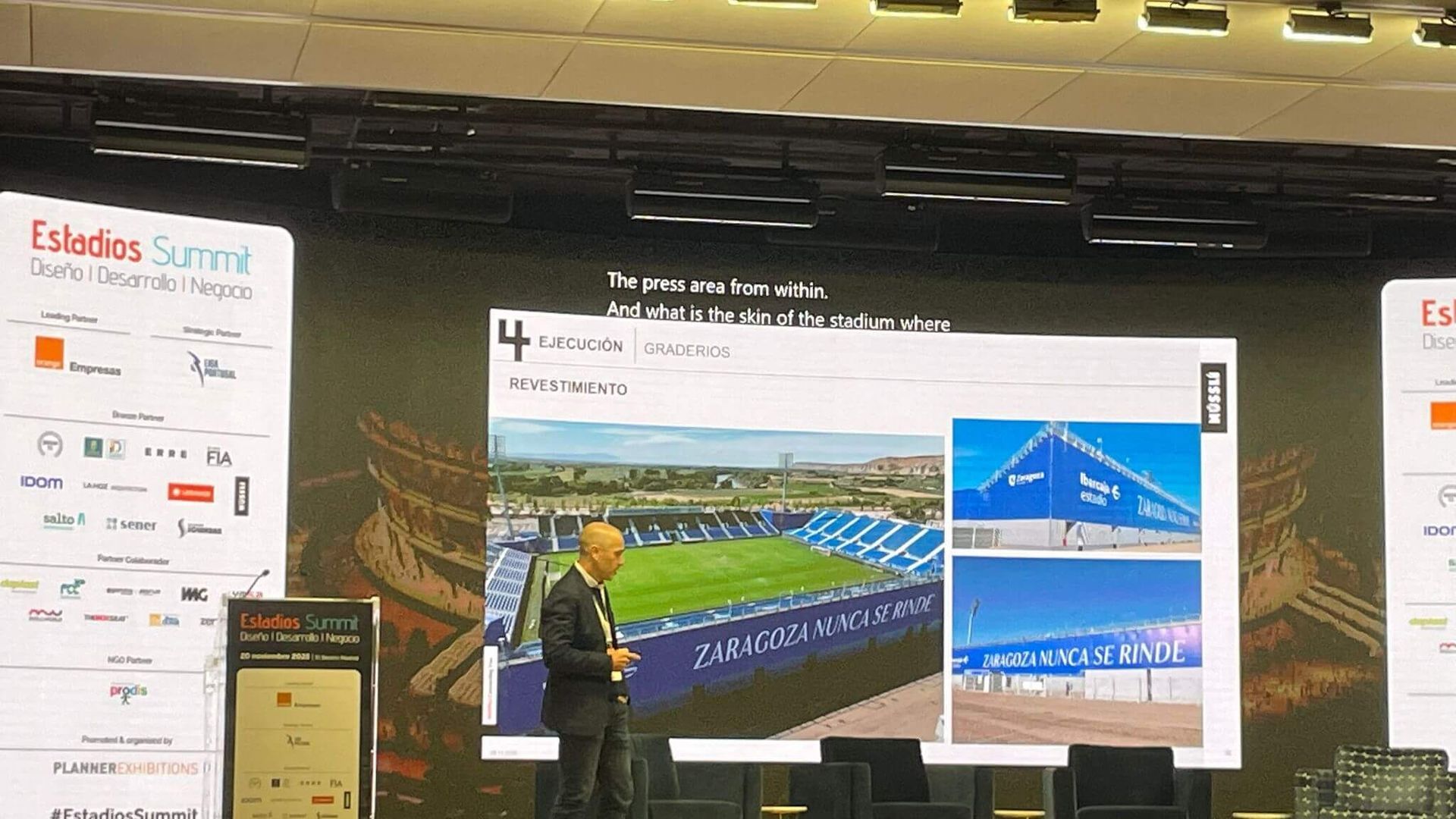 ZaragozaEl Real Zaragoza atraviesa una temporada muy complicada. En lo deportivo y en institucional. La afición es la que sufre la mala situación que atraviesa su equipo, último en la clasificación de LALIGA HYPERMOTION pese a haber sumado un triunfo vital en el último encuentro frente al Huesca. El hecho de tener que jugar este año en el Ibercaja Estadio debido a las obras en La Romareda tampoco ayuda. Un estadio modular que alberga algún que otro detalle del viejo templo. Uno de ellos lo desveló este jueves Lluis Herrero, Director General de NUSSLI IBERIA, durante el evento Estadio Summit, en el que diferentes dirigentes expusieron diversos modelos de negocios de algunos estadios y en el que ElDesmarque estuvo presente. Entre ellos, el Ibercaja Estadio.
