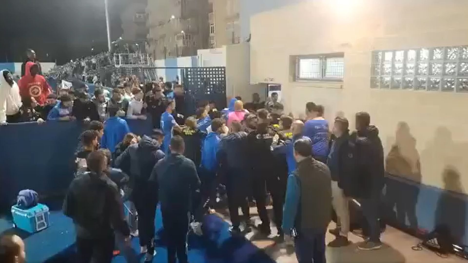 Tras el pitido final, jugadores y aficionados se agolparon en la entrada a vestuarios entre incidentes y actos violentos, tal y como se puede ver a continuación.