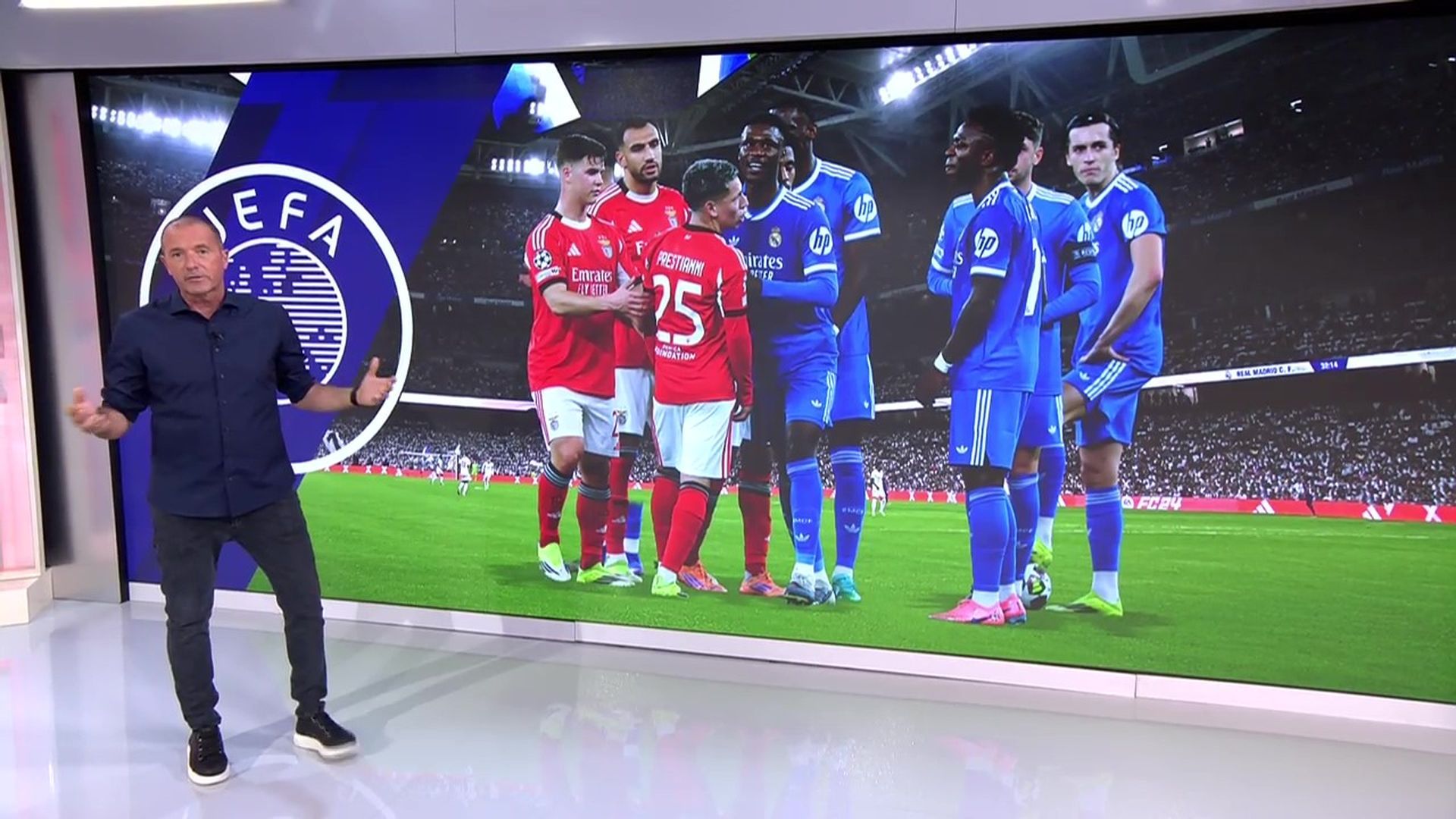 Lo explica así Manu Carreño: "El artículo 14 del Reglamento Disciplinario de la UEFA habla de 'comportamiento discriminatorio'. Y a eso se ha agarrado la UEFA para sancionar provisionalmente a Prestianni con un partido", expone. Sin embargo, para el presentador está claro el motivo: "Bueno, en el fondo lo que quiere es que mañana no se monte el pollo en el Bernabéu y por eso le sanciona. Aunque el Benfica dice que también puede sancionar a Mbappé porque le dijo 'puto racista' al jugador del Benfica", reflexiona.