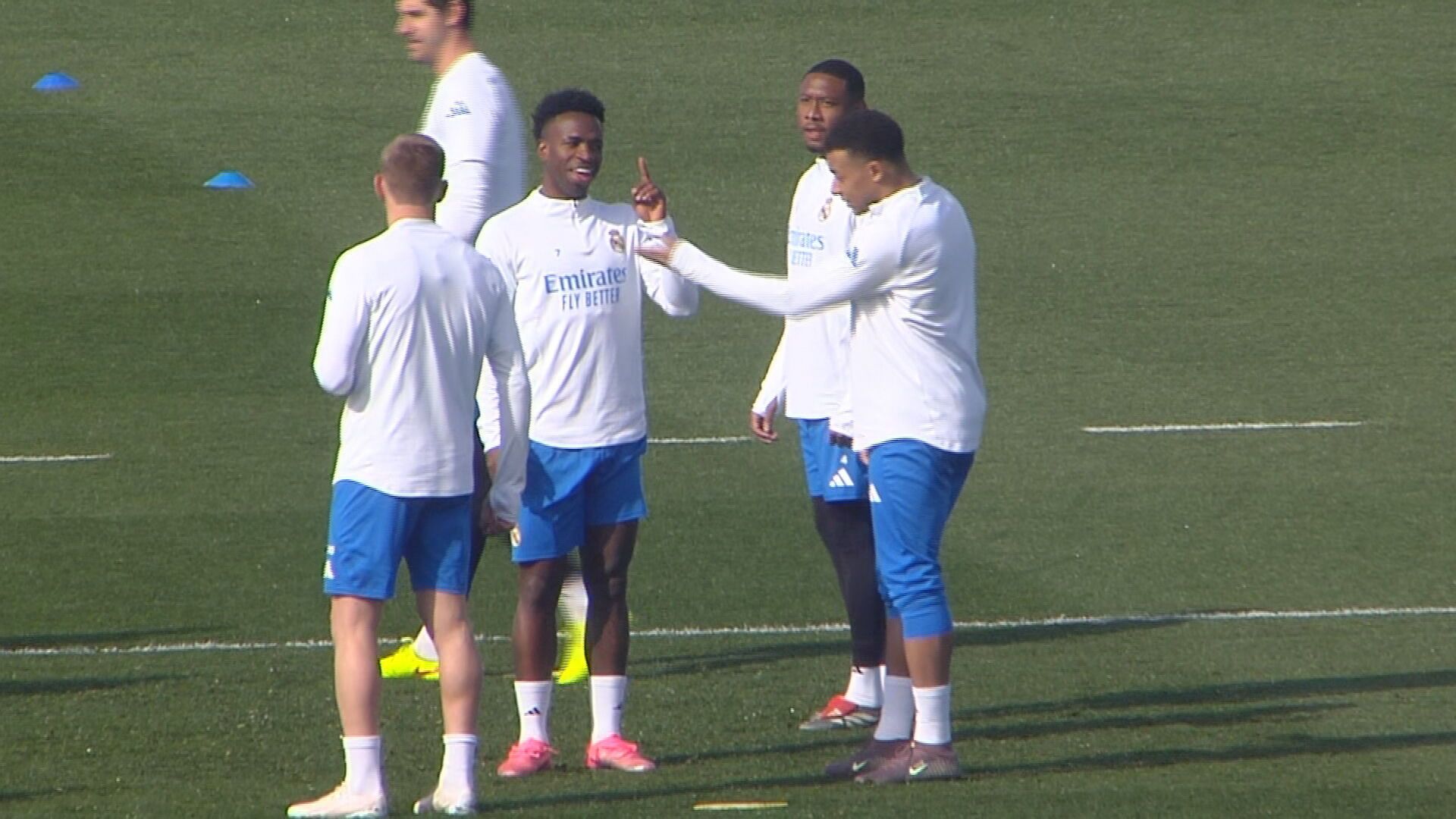 Último entrenamiento del Real Madrid antes de enfrentarse ante el Benfica. Los focos estaban puestos en Vinicius tras el incidente con Prestianni en el estadio Da Luz. El jugador argentino no estará en el partido y el brasileño no tendrán que saludarlo al comienzo del entreno en el habitual cruce entre los dos equipos. Al delantero merengue se le vio en la sesión muy sonriente y relajado e incluso tuvo un pique como Mbappé como se puede ver en el vídeo superior.