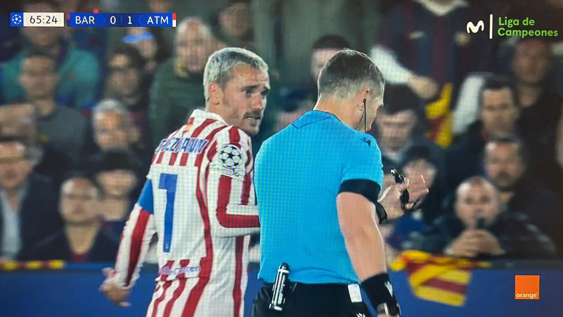 Sin embargo, la acción que más descolocó a Mateu Lahoz no fue ni la expulsión de Pau Cubarsí ni el posible penalti de Marc Pubill. Esta ocurrió en el minuto 65 de encuentro y los protagonistas fueron Antoine Griezmann y su bota.