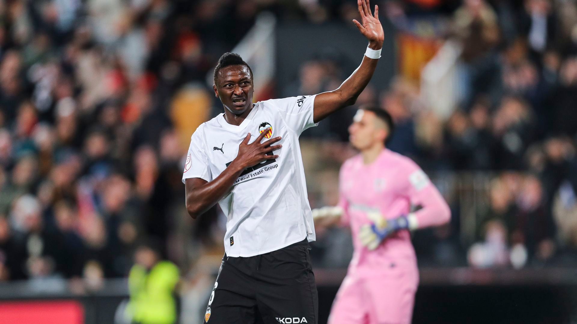 Sadiq lo primero que hizo fue levantar las manos y pedir perdón por el tanto que se había marcado en propia puerta. El partido se fue al descanso 1-1 en el marcador y los dos goles lo marcó él. Un 'doblete histórico' en Mestalla en menos de 45 minutos para el nigeriano.