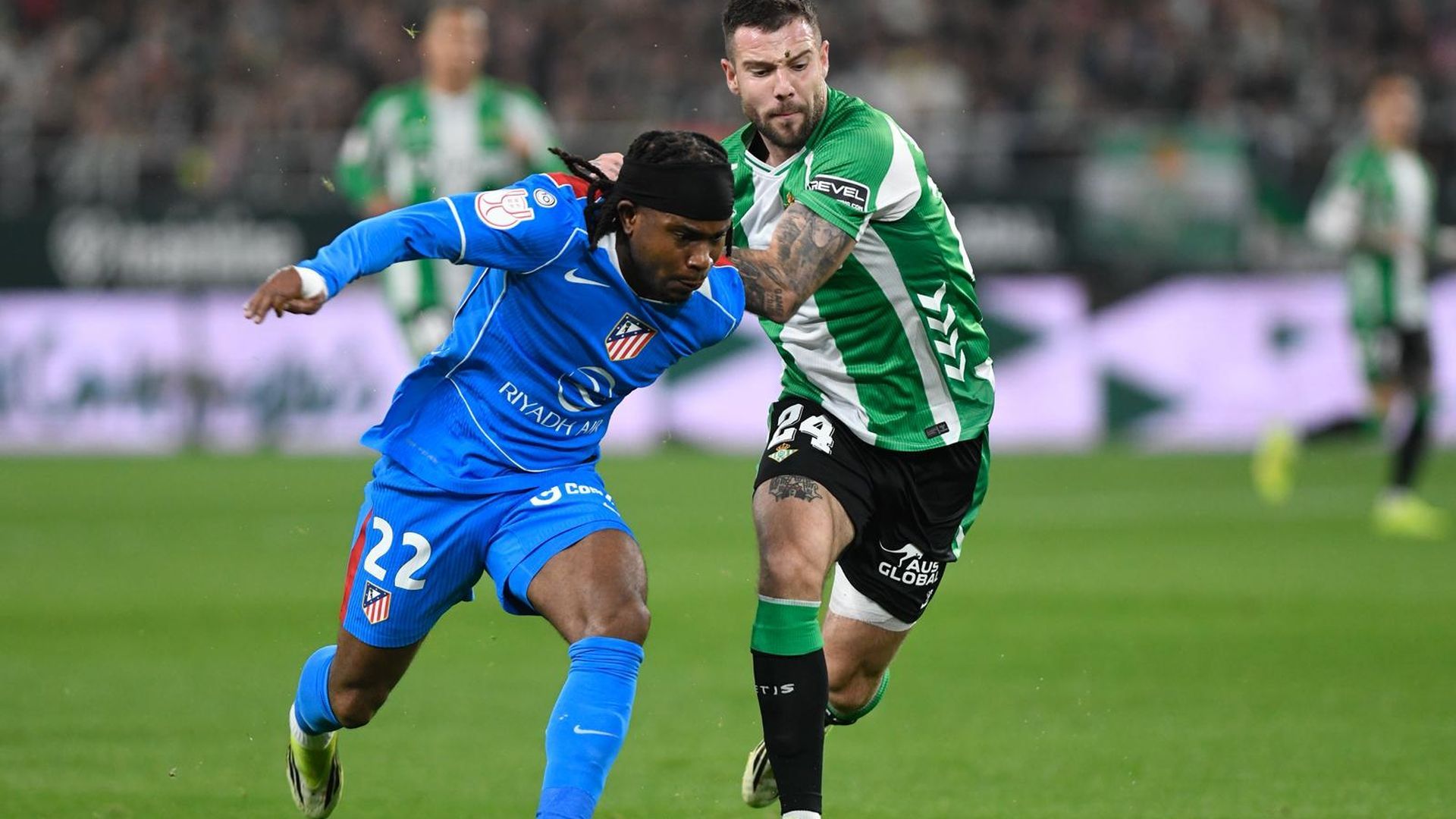 Poco antes de Aitor Ruibal, Antoine Griezmann era el encargado de atender al micrófono televisivo y, en referencia al Betis, destacaba el césped de La Cartuja como "el mejor de españa".