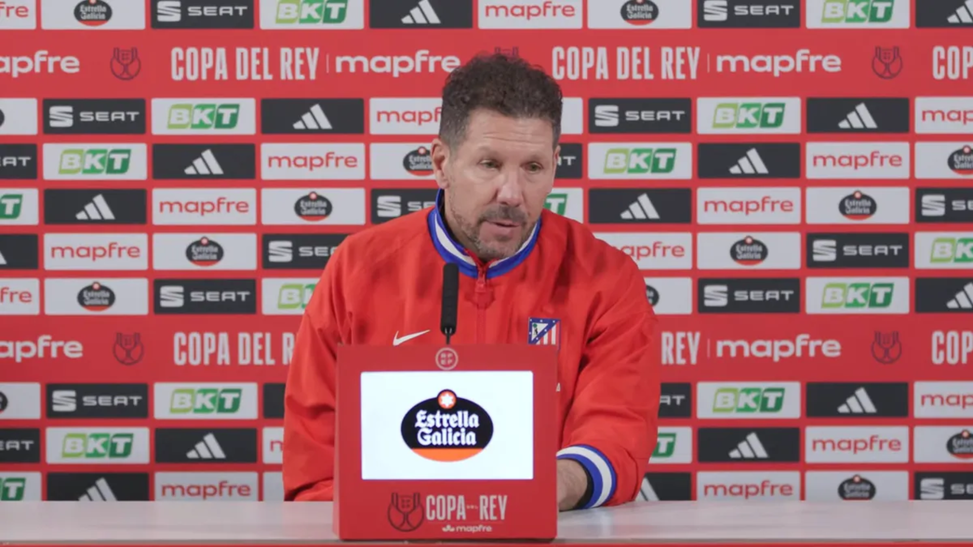 Diego Pablo Simeone, entrenador del Atlético de Madrid, ha pasado este miércoles por sala de prensa en la previa de la ida de semifinales de la Copa del Rey, en la que el cuadro rojiblanco recibirá al FC Barcelona en el Metropolitano. El técnico ha insistido en que es un hombre "de fe", ha pedido a la afición que apoye como en las grandes noches, ha destacado tres cualidades del equipo de Hansi Flick y ha analizado la situación de Álex Baena.