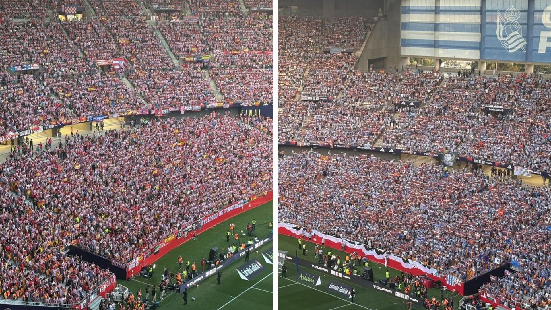 Fondo y medio para Atlético de Madrid y Real Sociedad, miles de gargantas empujando a sus guerreros hacia la conquista del título de la Copa del Rey... pero también división de opiniones cuando el himno nacional comenzó a sonar.