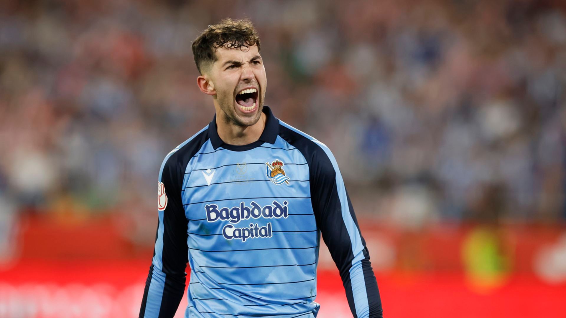 Poco pudo hacer en los goles de Lookman y Julián Álvarez, muy lejos de donde pudiera llegar, pero sí estuvo acertado en los numerosos balones aéreos colgados al área. La gran acción a tiempo corrido llegó cuando salvó un mano a mano de Johnny Cardoso que sirvió para mantener viva a la Real Sociedad y llevar el choque a la prórroga.