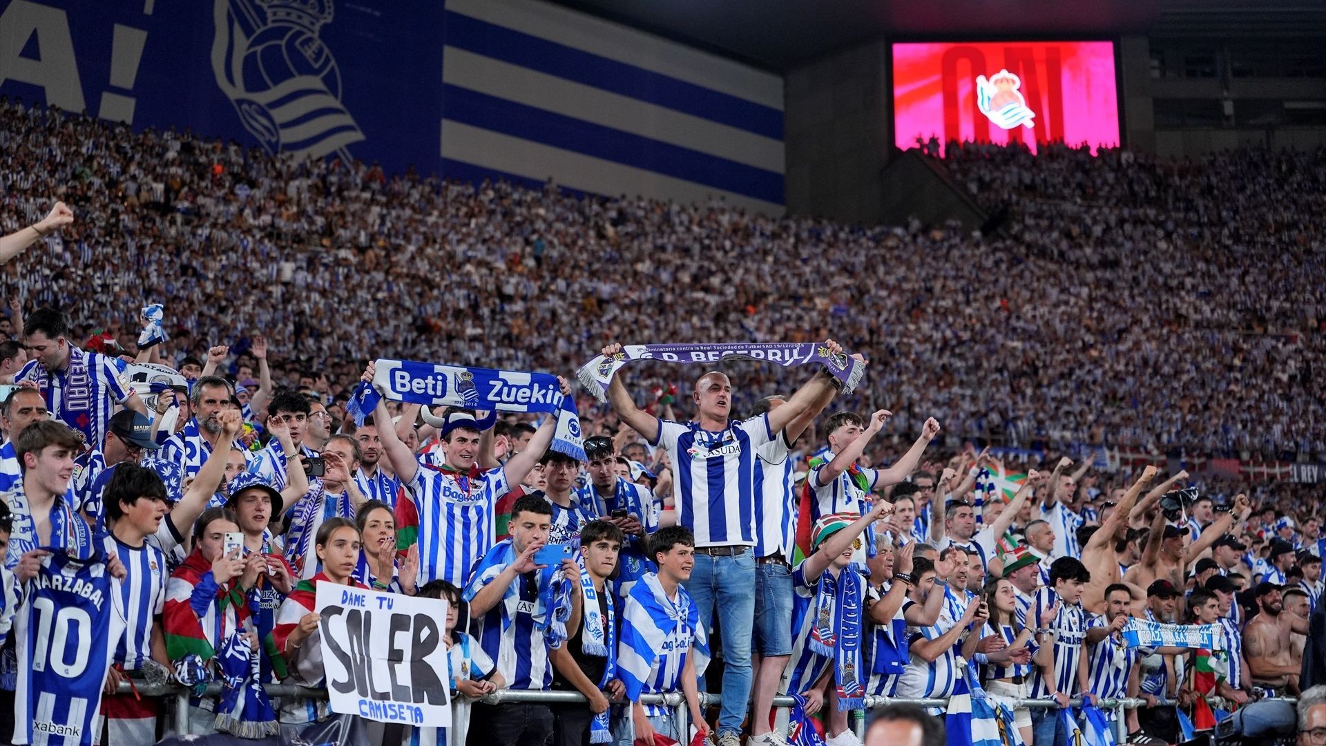 En comunión con la grada, la Real Sociedad protagonizó un momento que ya entra en la historia de la entidad vasca. Afición, equipo y miembros del club se fusionaron para entonar el himno a toda voz dejando imágenes ya históricas.