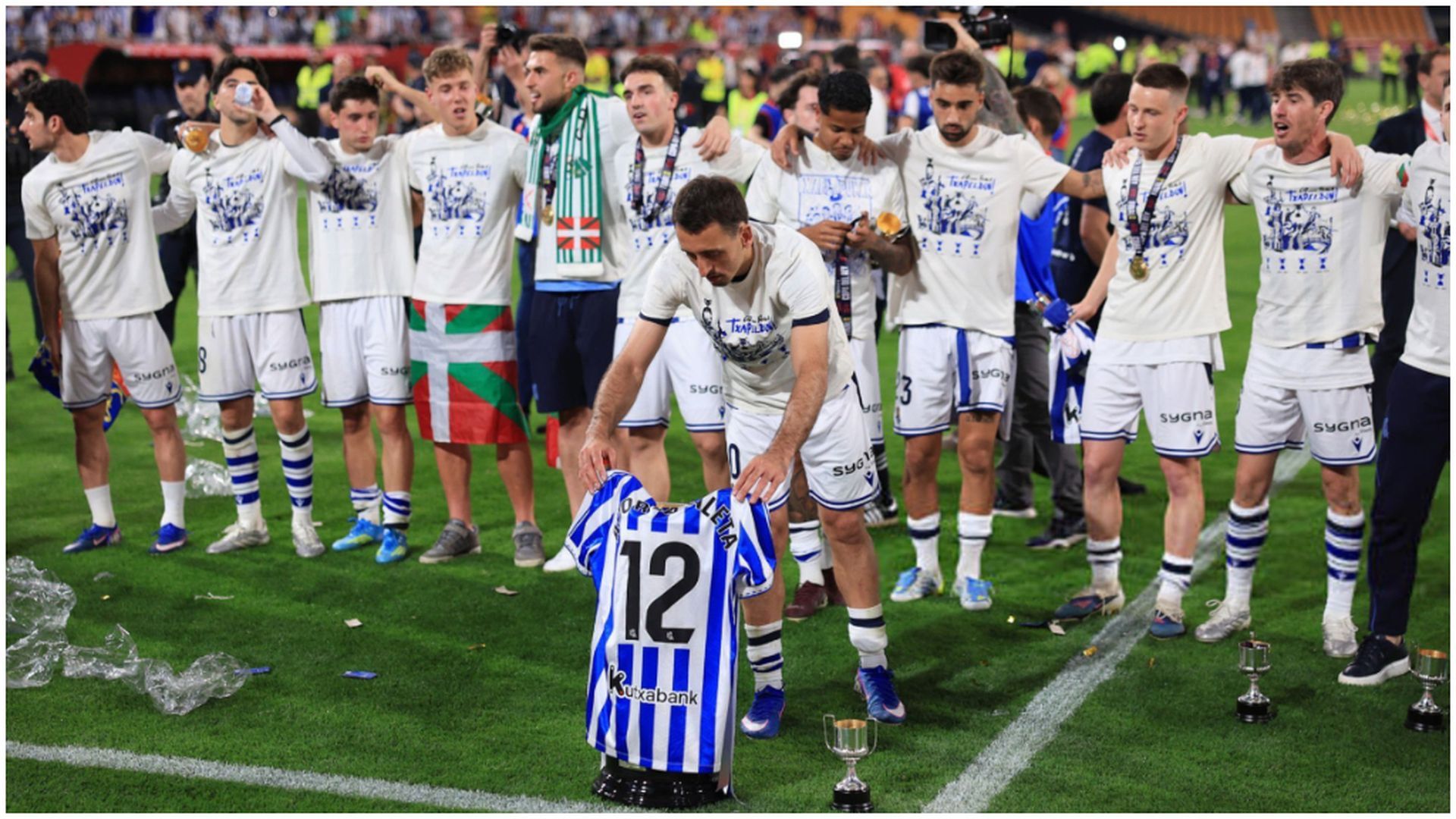 El momento más emotivo llegó después, cuando Mikel Oyarzabal recogió ese testigo. El capitán utilizó esa misma camiseta para colocarla sobre la Copa en el momento de alzarla al cielo de Sevilla. Un gesto lleno de significado que convirtió el título en un tributo.