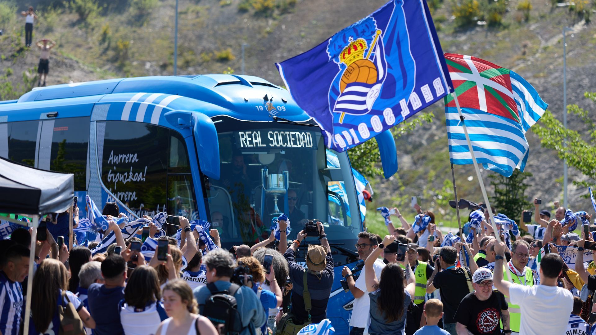 Los futbolistas y el resto de miembros del equipo pudieron ver directamente el ambiente de euforia que se vive en casa, un anticipo de lo que podrán ver en esa fiesta preparada por las calles de San Sebastián.