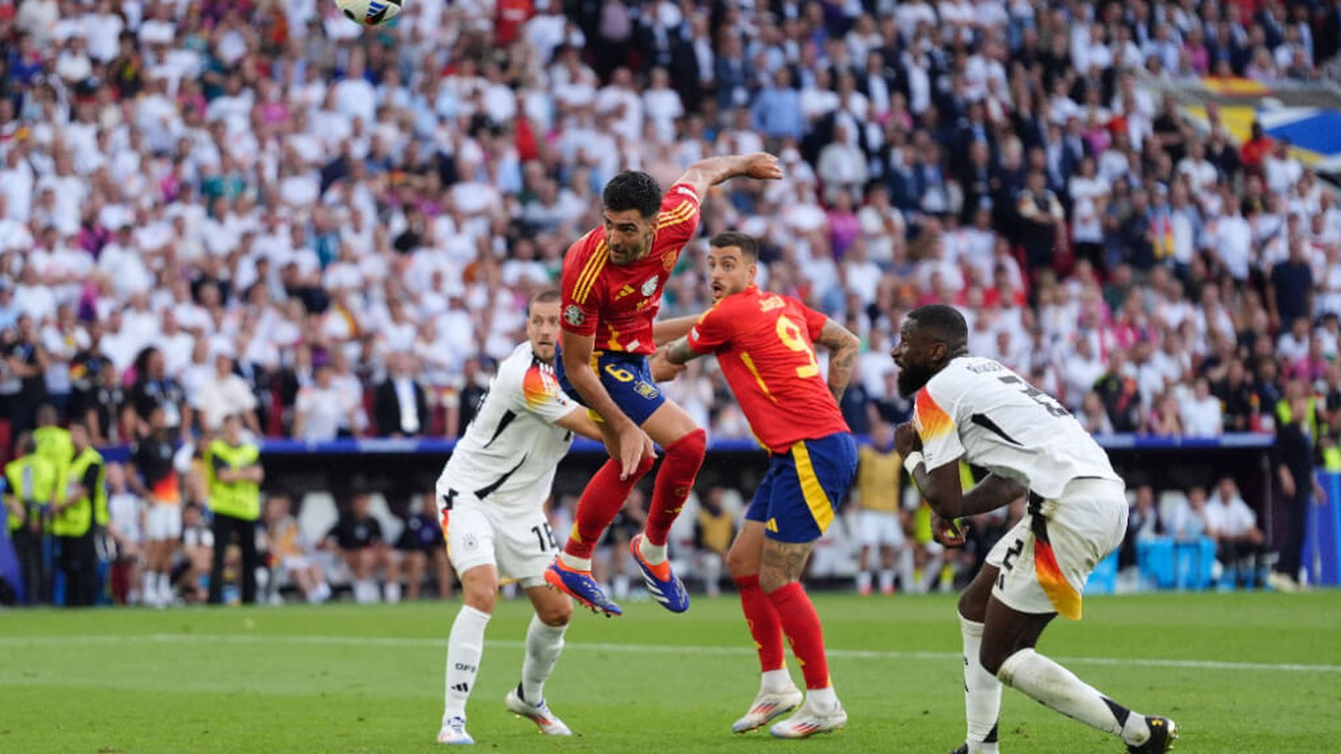 España consiguió el pase a semifinales gracias al triunfo sobre Alemania en los caurtos de final. Un partido en el que tuvo que sufrir las acometidas de un equipo que, como anfitriones, quería llegar a la final de la Eurocopa 2024. El partido no comenzó fácil para la Selección Española tras la lesión de Pedri González tras una entrada de Toni Kroos. Un traspié que marcó el partido por la dureza de una Selección Alemana que tuvo opciones tanto de empatar antes de conseguirlo, como de darle la vuelta. Dani Olmo consiguió el primer gol tras un buen pase de Lamine Yamal. El partido contó con el resultado de 1-0 hasta los últimos minutos del encuentro. Hasta que en el 89, Florian Wirtz aprovechó una asistencia de Kimmich para colocar el empate y llevar al partido a la prórroga. Cuando todo parecía que se iría de a los penaltis, Mikel Merino cabeceó un esférico a la red a un pase de Dani Olmo. Lo que llevaba el equipo a las semifinales.