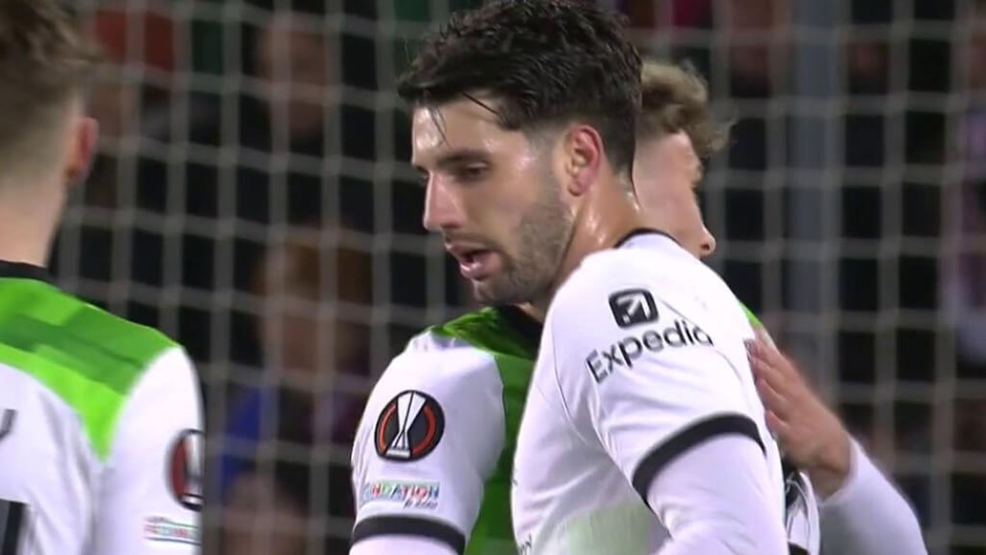 El Sparta de Praga aprovecha la siesta de la defensa del Liverpool para atacar por la derecha. Kuchta gana la espalda, pase de la muerte a Haraslin y paradón espectacular del guardameta red. Joe Gomez tuvo que tapar el balón en la línea.