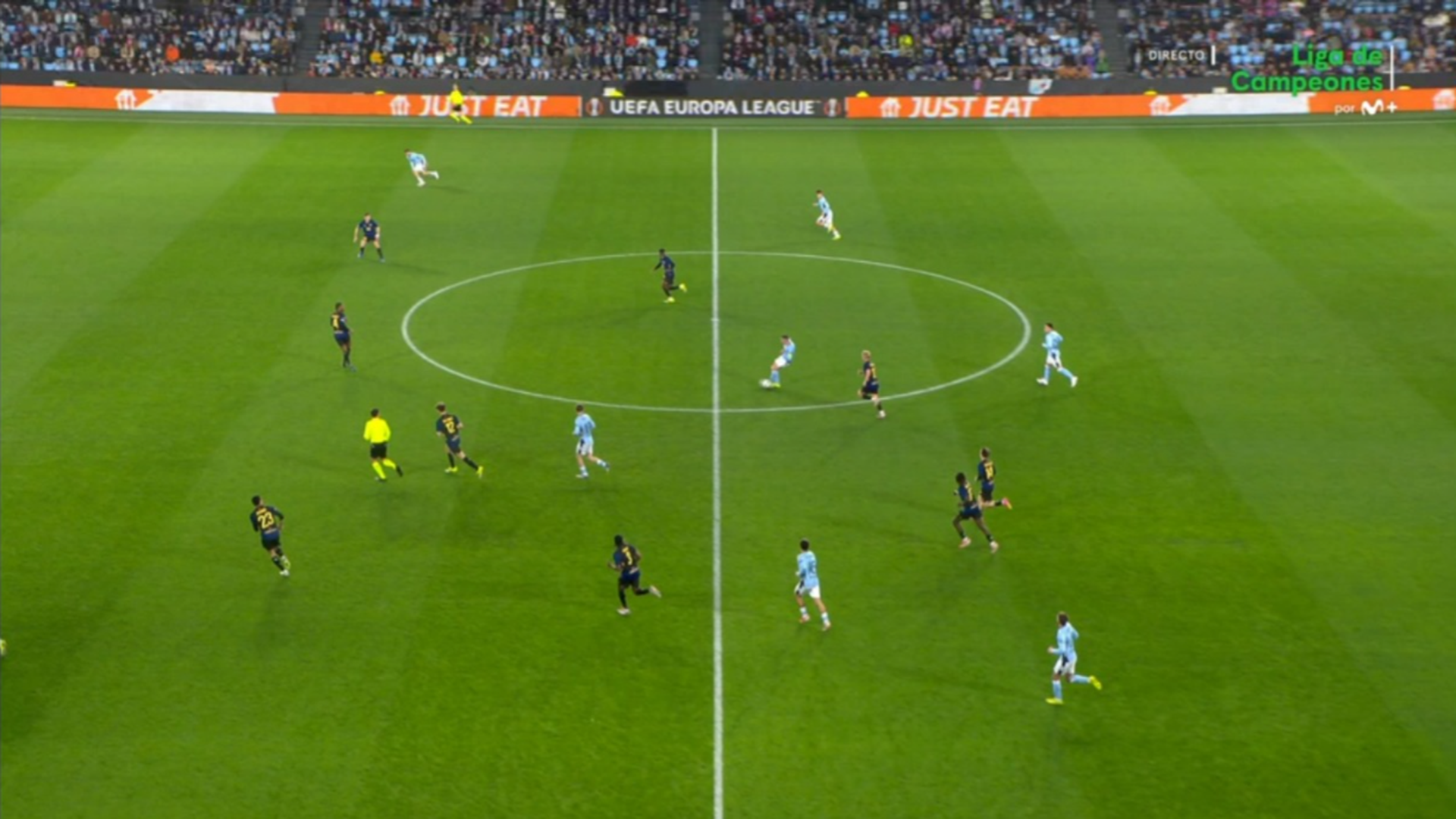 Corría el minuto 19 cuando el Celta rozó el 2-0. Por unos instantes subió al luminoso, pero Harm Osmers, trencilla principal del encuentro, acabó deteniendo el encuentro. Los jugadores celestes no conseguían entender qué ocurría en un primer momento.