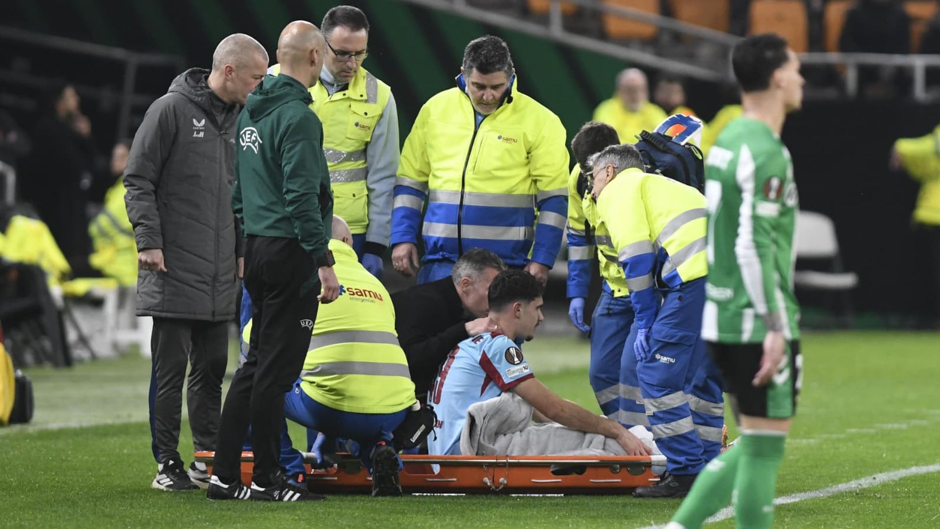 Un salto en una pugna con Diego Llorente acabó de la peor manera. El joven jugador, nacido en Londres cuando su padre jugaba en el Arsenal hace 19 años, cayó mal sobre el césped de La Cartuja, se fue al suelo con la mano en la rodilla y rápidamente saltaron todas las alarmas. El central madrileño, con experiencia reciente en una lesión de larga duración, fue el primero en mostrar su preocupación por él.