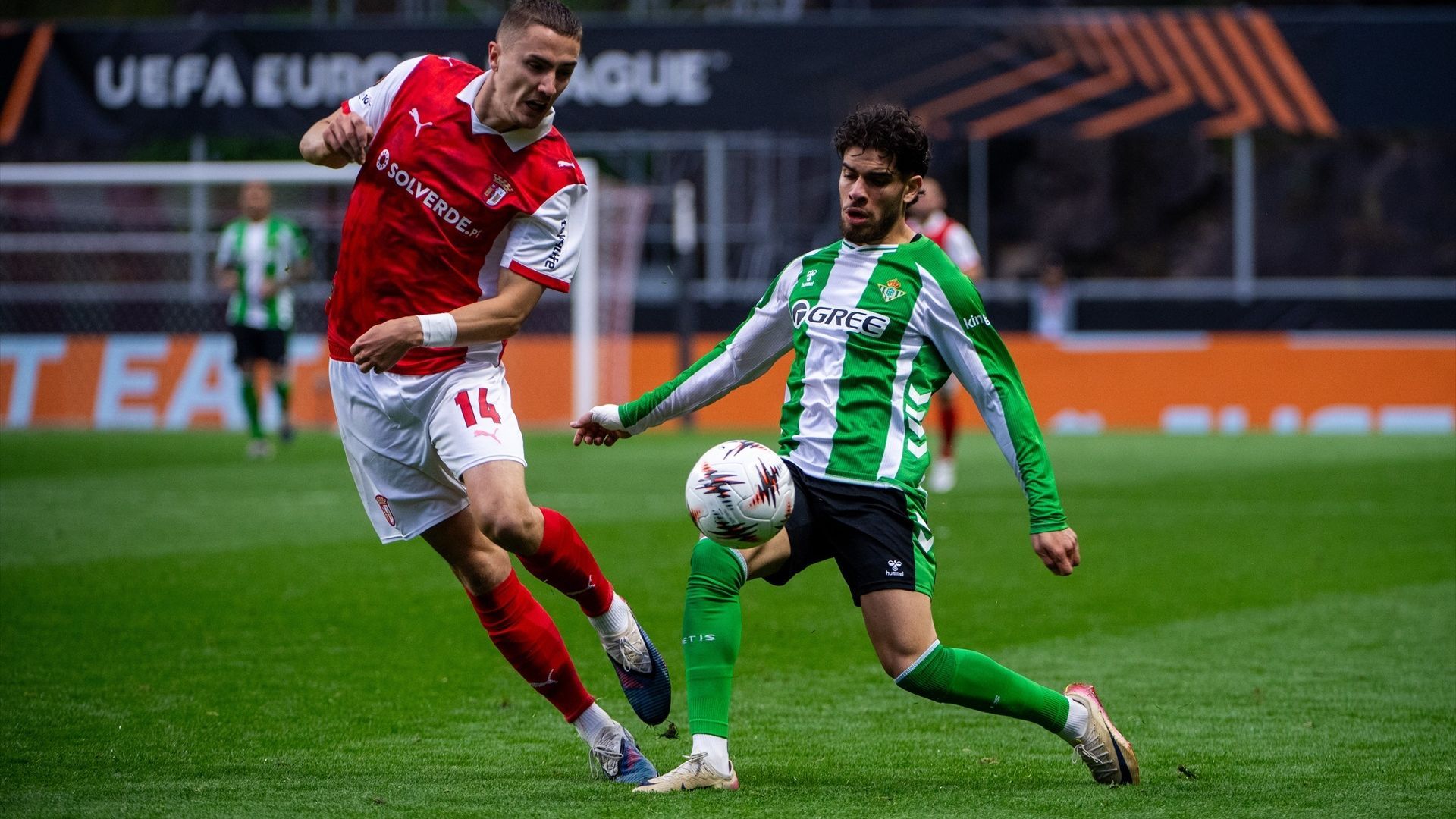 Ha sido una de las imágenes del encuentro entre el Betis y el Braga. Abde, atacante verdiblanco, provocó un penalti que intentó lanzar posteriormente, pero el Cucho Hernández, con ayuda de Marc Bartra, acabó quitándole el balón para anotar el empate. Pellegrini, entre tanta polémica, lo soluciona: "Es bien fácil".