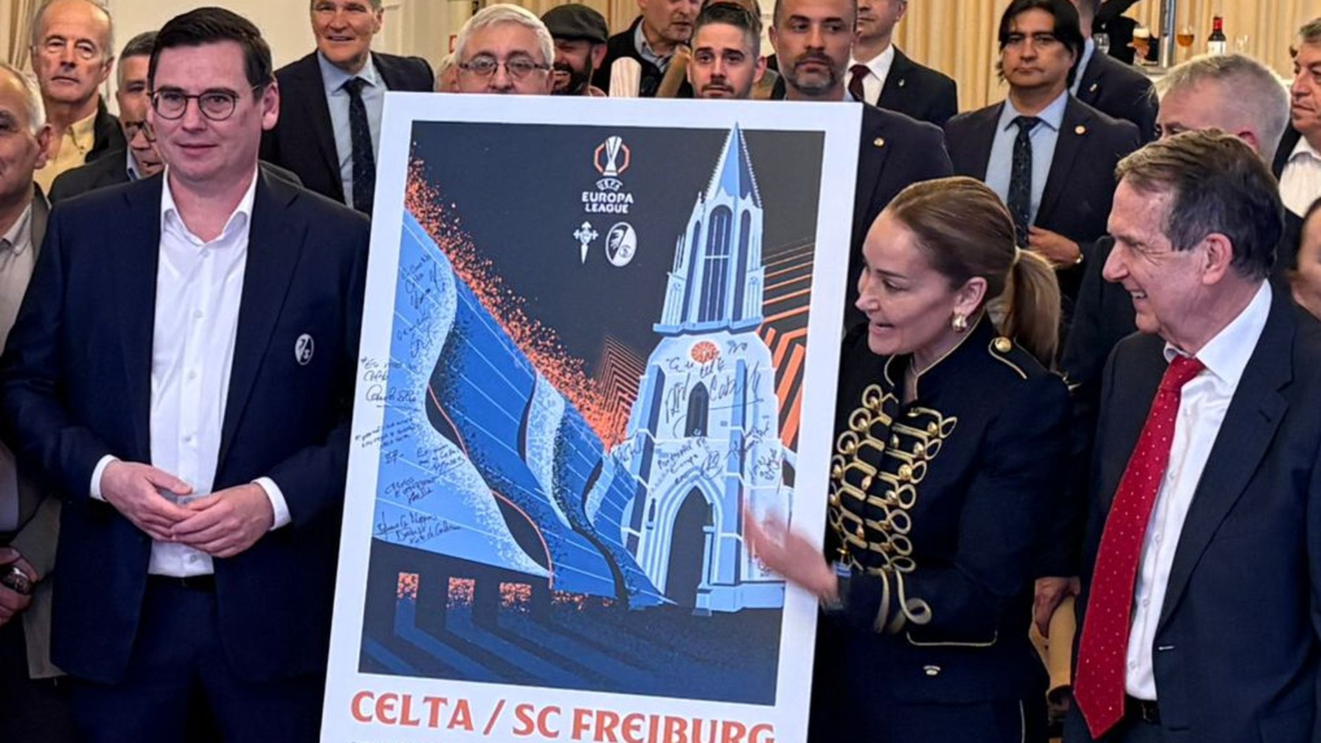 VigoEl Salón Regio de A Sede del Celta de Vigo acogió la recepción a los representantes del SC Friburgo. En Balaídos ambos conjuntos buscarán el pase a las semifinales de la Europa League. Los de Julian Schuster llegan con tres goles de ventaja a la vuelta tras la contundente victoria en el Europa-Park Stadion. Eso no ha amilanado al club celeste. Marián Mouriño, su presidenta, aseguró que el Celta va a "competir con todo lo que tenemos".