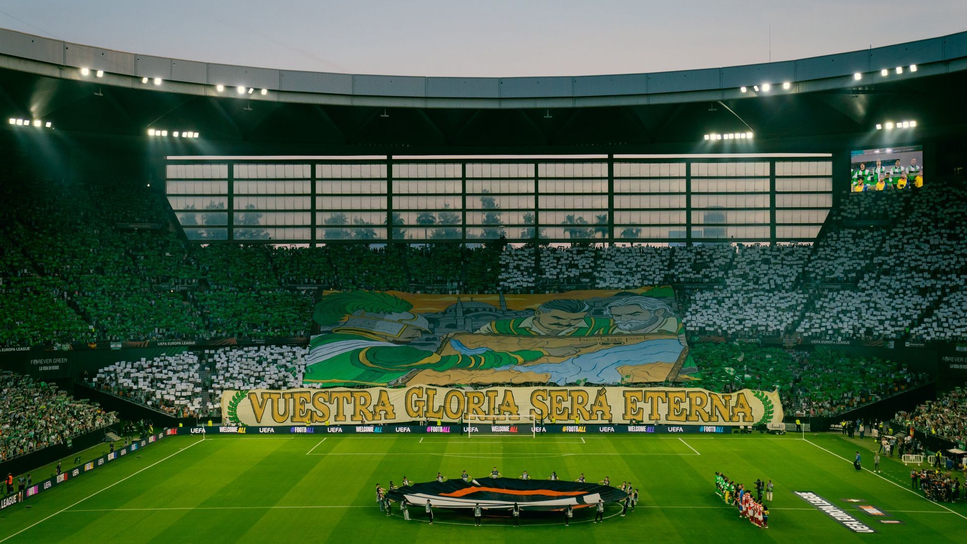 En aquel compromiso de octavos de final la Grada Gol Sur 1907 realizó un doble tifo, primero con un cubregradas que rezaba: "A morir hemos venido, a vencer si la historia lo dispone". Unos minutos más tarde se levantó sobre la misma zona una gran pancarta en la que se podía ver a dos galeones verdiblancos por el Estrecho del Bósforo con la Iglesia de Santa Sofía y el Besiktas Stadium de Estamhul, escenario de la final de la Europa League 25-26, redondeado de la frase "A la conquista por su Santo Escudo". Una frase que ha generado mucho entusiasmo por parte de un gran sector del beticismo y que hasta el propio Real Betis ha acopiado. ¿Continuará la historia?