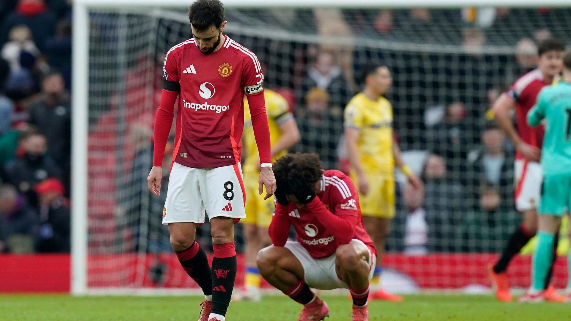 El Manchester United sigue en caída libre. El cambio de entrenador producido a finales de octubre, con el despido de Erik Ten Hag y la llegada dos jornadas después de Rúben Amorim, no consigue hacer efecto en un histórico del fútbol mundial que vive sus horas más bajas. Este domingo, volvió a perder. Otra vez en casa. Va 14º en la clasificación y los números del nuevo técnico en el campeonato doméstico ya son peores que su antecesor. Amorim se muestra incapaz de levantar a un equipo que cayó 0-2 ante el Crystal Palace, con un doblete de Jean Philippe Mateta en una tarde complicada para Lisandro Martínez, lesionado de gravedad en una rodilla al final del encuentro. El equipo red está en tierra de nadie: a 12 puntos de Europa y 12 puntos sobre el descenso.