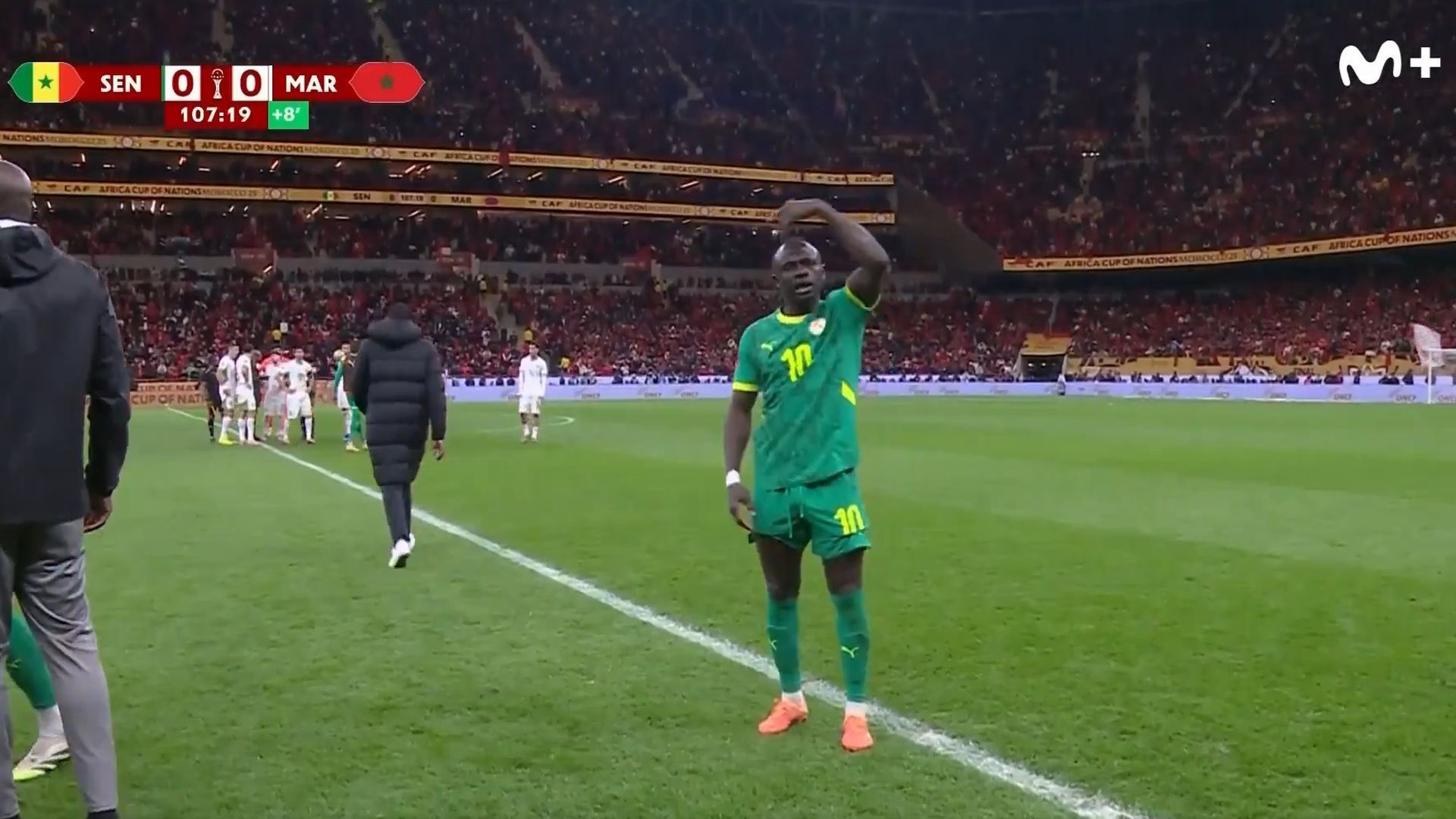 Mientras sus compañeros seguían las directrices de su seleccionador y se marchaban del campo, Mané pidió a sus compañeros que volvieron para el lanzamiento de penalti y el devenir de la final. Fue el único que se mantuvo sobre el verde pese a la orden de su técnico. Finalmente, minutos después, Senegal volvió al campo para el lanzamiento del penalti. Brahim lo tiró a lo panenka y falló, por lo que el resultado continuó tal cual comenzó.