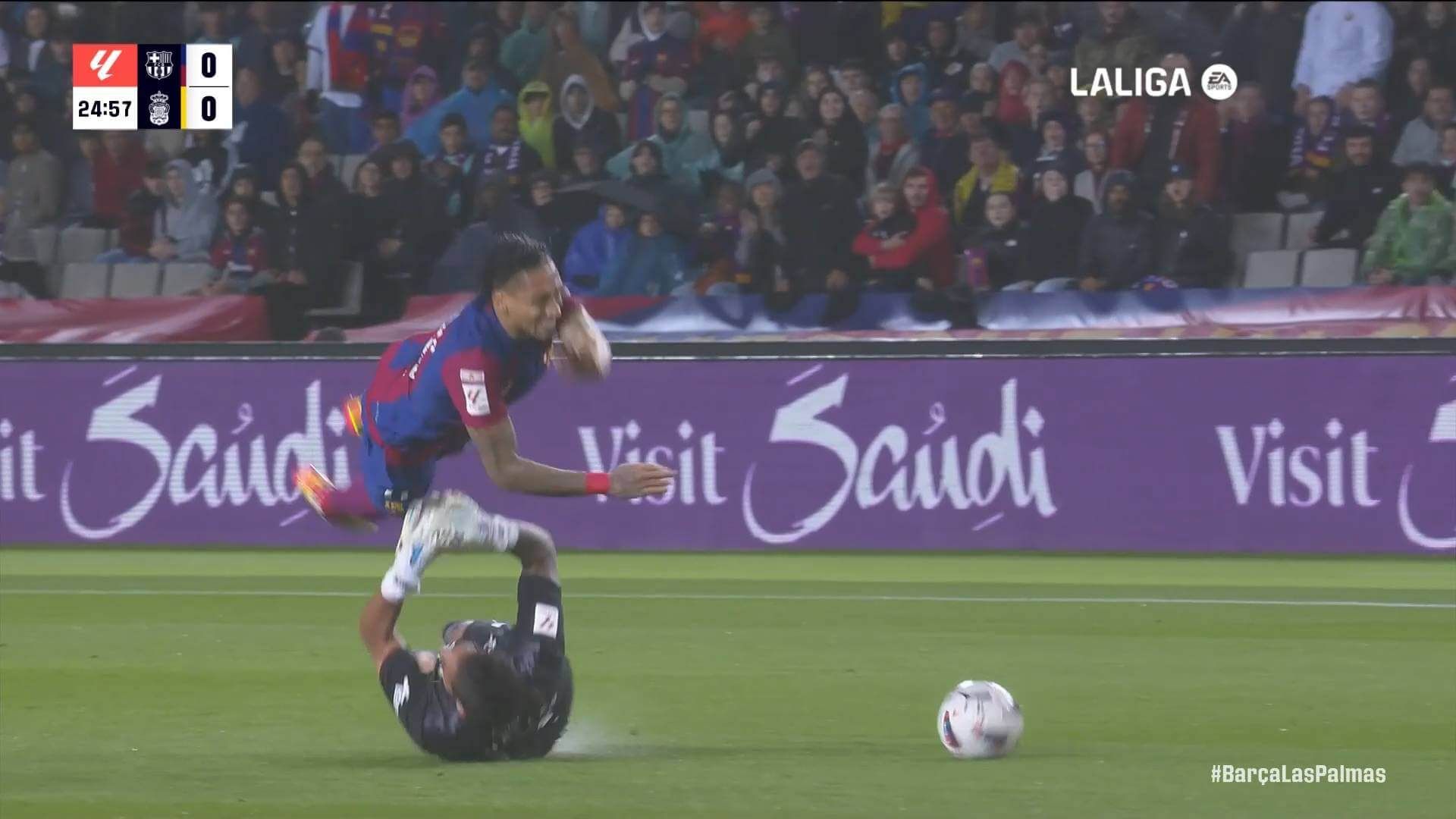 El Barça no se quiere despegar del Real Madrid en LALIGA EA Sports. Para ello ha sido fundamental el partido contra la Unión Deportiva Las Palmas. Un encuentro que se puso de cara a los culés en el primer tiempo tras la expulsión de Álvaro Valles tras una entrada durísima sobre Raphinha. Afortunadamente, el delantero brasileño del Barça no ha tenido que lamentar ninguna lesión y ha podido completar el resto del partido.