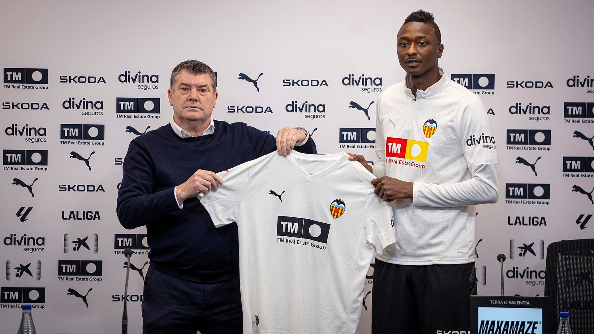 Umar Sadiq ha sido presentado hoy como nuevo jugador del Valencia CF para lo que resta de temporada y dos más. Lo ha hecho, además, desvelando su nuevo dorsal. El delantero podía elegir entre dos que quedaban libres: el 2 de Max Aarons y el 6 de Hugo Guillamón y de otras leyendas del club. Finalmente ha decidido quedarse con el 6, un dorsal no habitual para un delantero pero que en el Valencia tiene mucha, mucha historia.