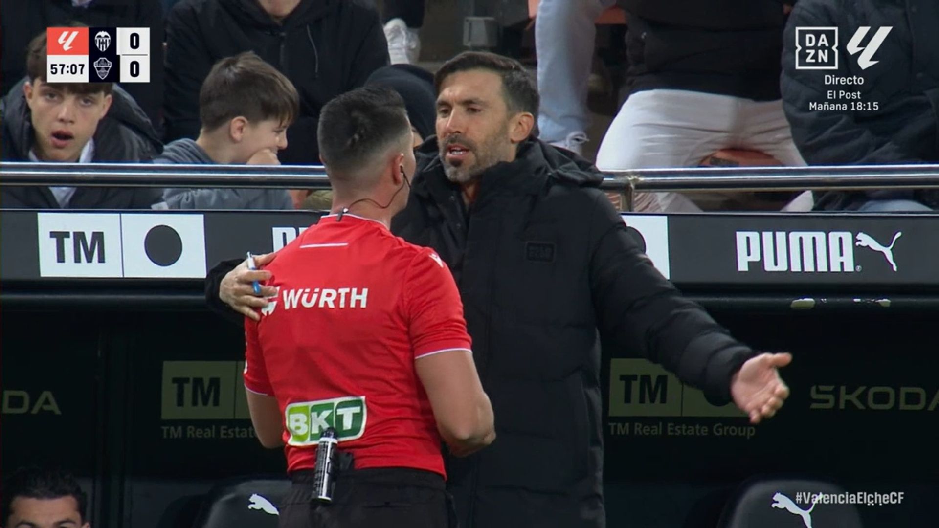 El partido del Elche vivió un momento tenso cuando Pedro Bigas se tuvo que retirar en camilla tras un duro choque en la rodilla derecha. Llorando mientras era atendido por el cuerpo médico, el central dejó en evidencia el impacto de la jugada con Beltrán. La situación se complicó con la intervención del árbitro Ortiz Arias, quien tuvo un intercambio de palabras con el entrenador del Elche, Eder Sarabia: “Yo no me meto en tu trabajo y tú no te metas en el mío”.