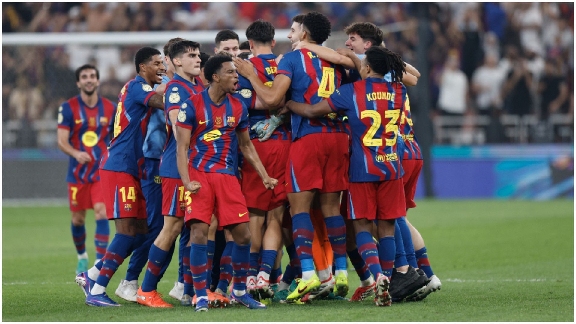 XI del FC Barcelona: Joan García; Koundé, Cubarsí, Eric García, Balde; Frenkie de Jong, Pedri, Fermín; Lamine Yamal, Dani Olmo y Ferran Torres.
