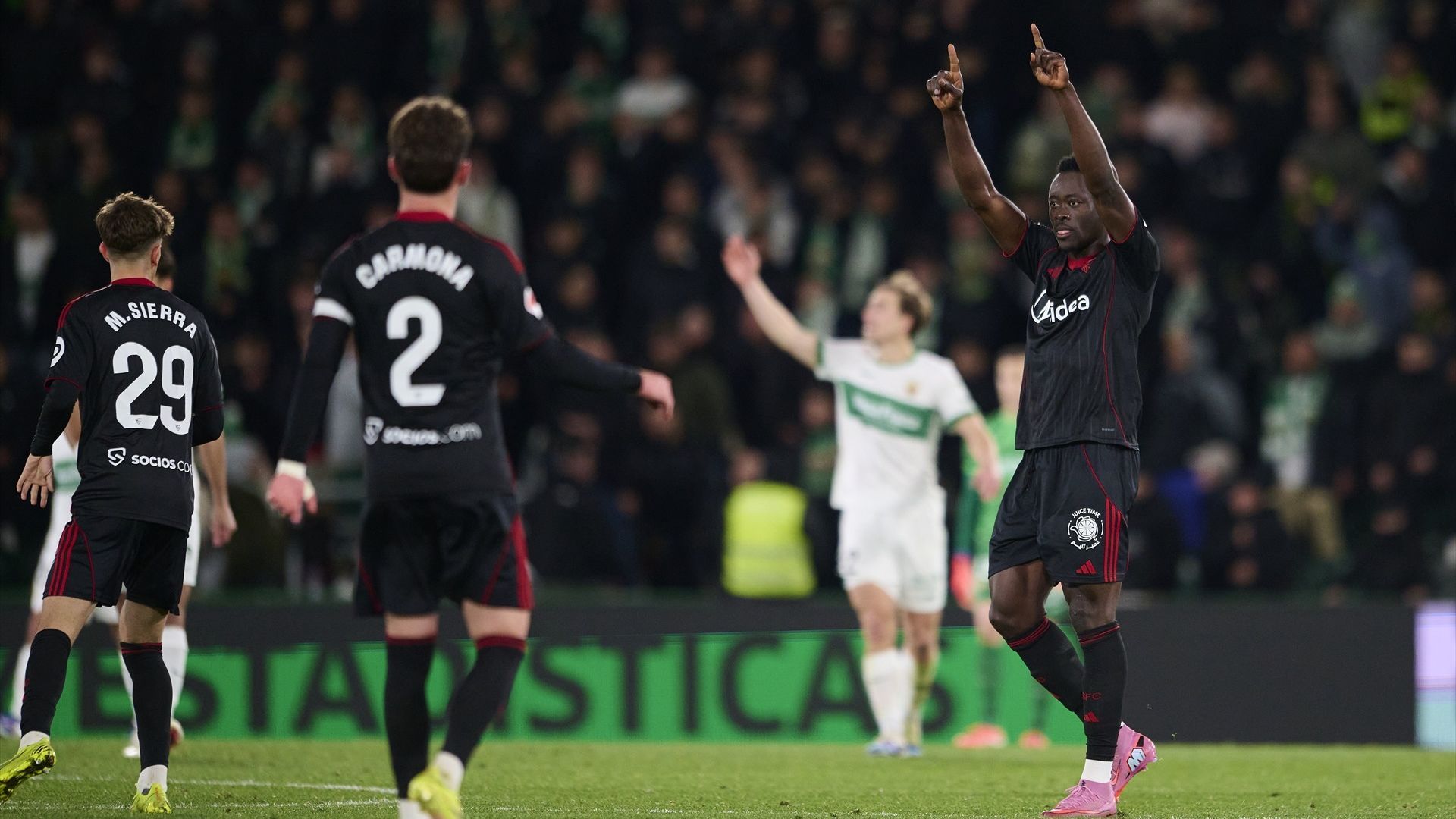 Con su doblete de este lunes, Akor Adams ya es el máximo goleador de la temporada sevillista con cinco tantos. Almeyda ha valorado el esfuerzo de los dos nigerianos para estar en el Martínez Valero, pues prácticamente ni pasaron por casa a su regreso de Marruecos antes de viajar a Elche, y han jugado sin entrenar siquiera con su equipo. “Los muchachos que vienen de la Copa de África son refuerzos para nosotros. Estos chicos, jugaron, no vieron a sus familias, y quisieron venir acá. Muchas veces se minimiza, yo le doy importancia a querer estar en un grupo y no tener esas vacaciones que se merecían, se están jugando el momento como nos jugamos todos”, decía el entrenador tras el partido. Ha llegado el delantero, el gol viene de África.