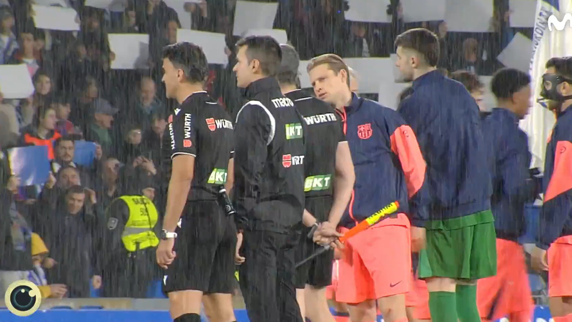 Pues bien, antes de eso, sí que hubo cordialidad y buen ambiente entre Frenkie y Gil Manzano. Justo antes del comienzo del partido, en la tamborrada previa, cuando jugadores y cuerpo arbitral saltaban al césped del Reale Arena, el centrocampista holandés y el colegiado extremeño sí que estuvieron de acuerdo en algo: en darse la vuelta para disfrutar el espectáculo, tal y como han captado las cámaras de El Día Después.