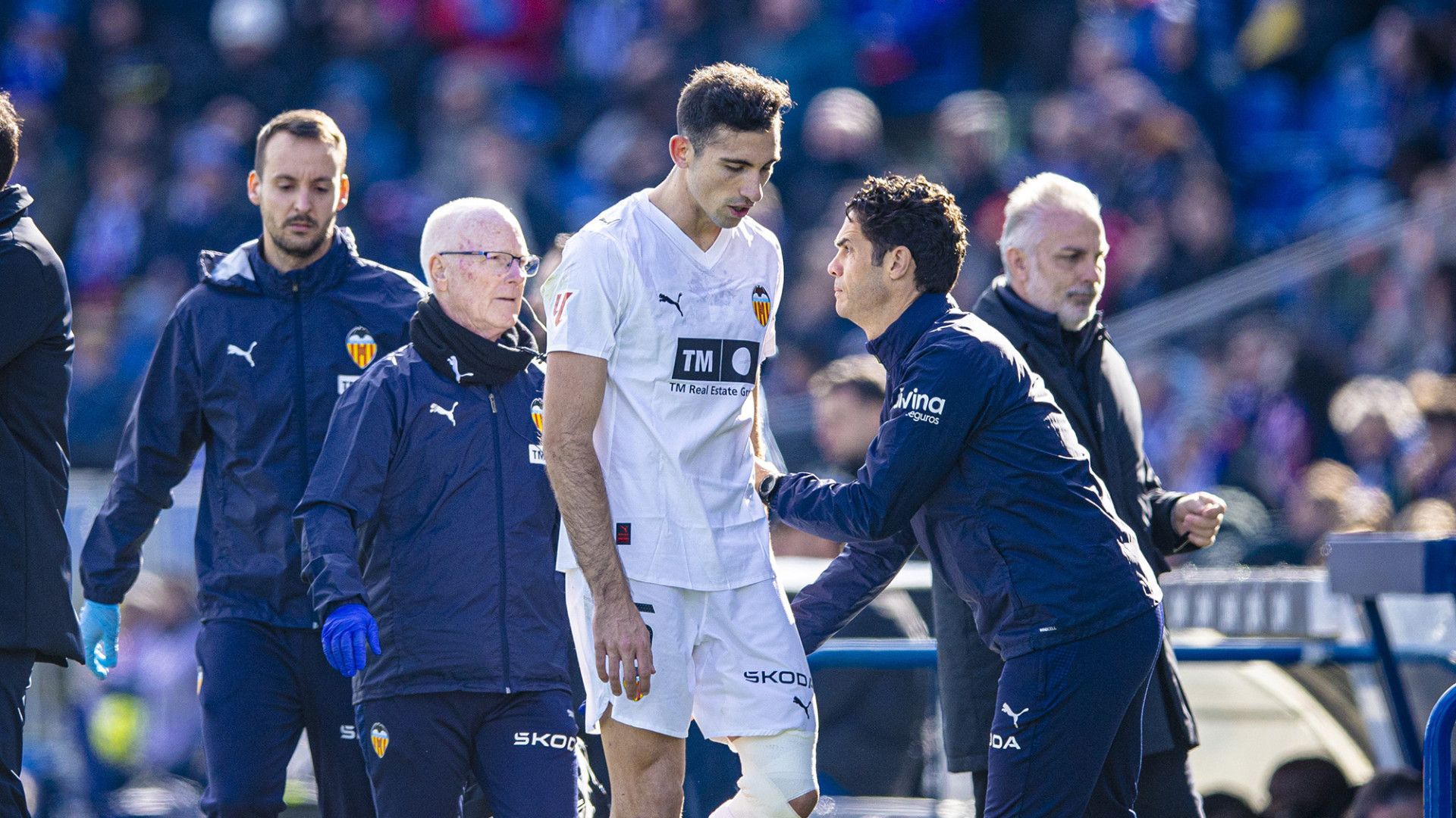 Según explicó Carlos Corberán, su lesión es en la otra rodilla y se debió al estado del terreno de juego. La lesión de hoy es en la otra rodilla, el estado del terreno de juego hacía que se resbalasen, que se clavasen los jugadores. Veremos cuál es la afectación de la lesión", dijo el entrenador que ahora se queda sin uno de sus capitanes hasta febrero.