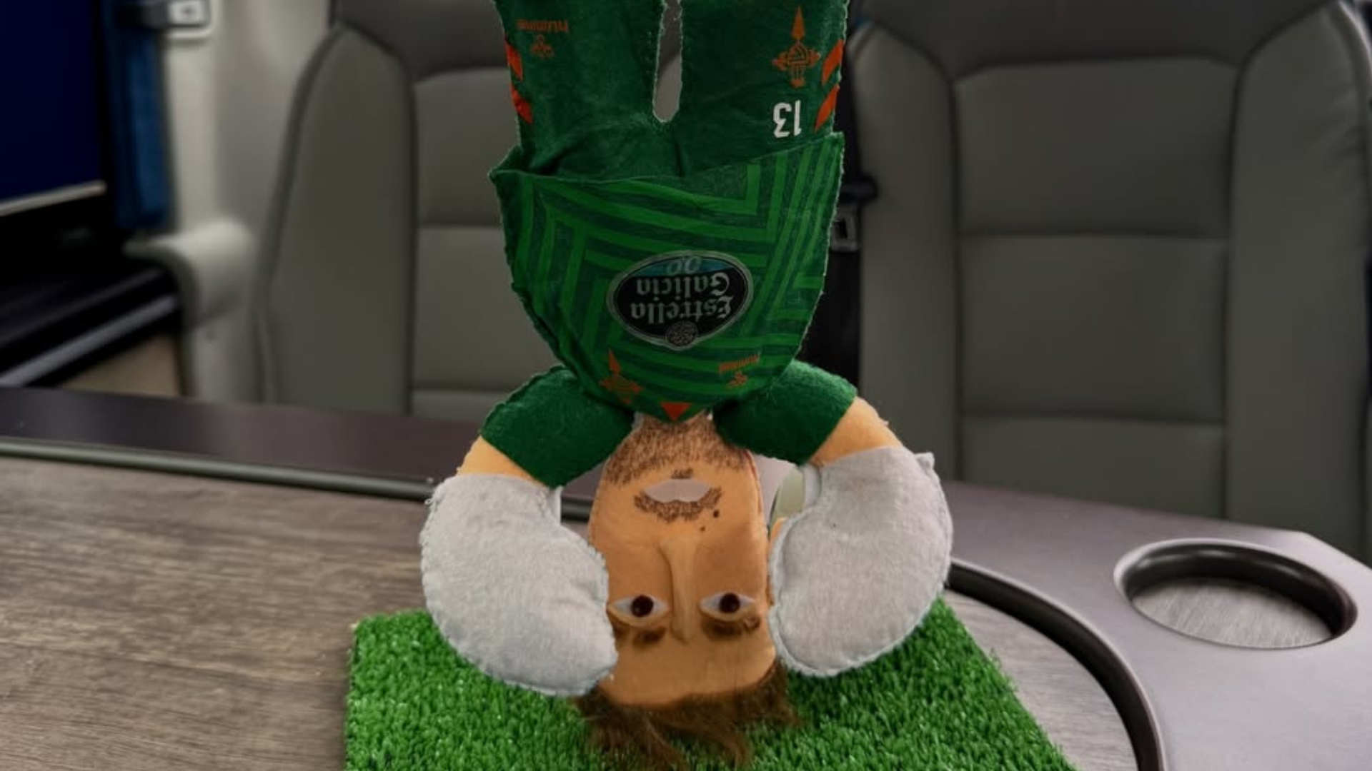 Ahora el Andrei Radu ha mostrado un muñeco de él mismo posando boca abajo. La postura que se ha convertido ya en una tradición en el club ya que incluso el Juvenil de División de Honor posó con su portero Izan Server boca abajo tras eliminar al Villarreal en la Copa del Rey. La fotografía se tomó en el autobús del Celta de Vigo.