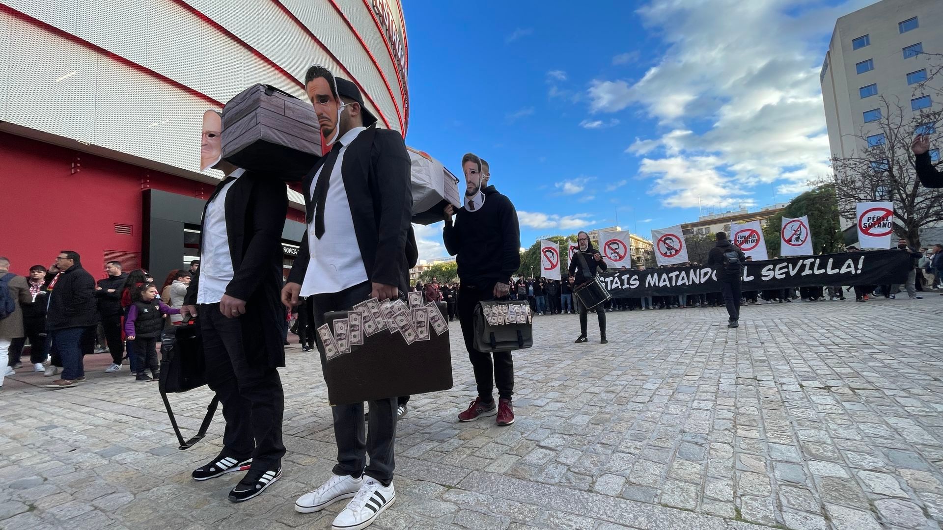 Dicho y hecho. Aproximadamente una hora y media antes del inicio del partido, miles de sevillistas protagonizaron una nueva concentración en contra del consejo que preside José María del Nido Carrasco y las familias que ostentan la propiedad de la entidad. Todo ello, en pleno proceso de venta y con la sensación de que, venga quien venga, lo hará mejor que los actuales.