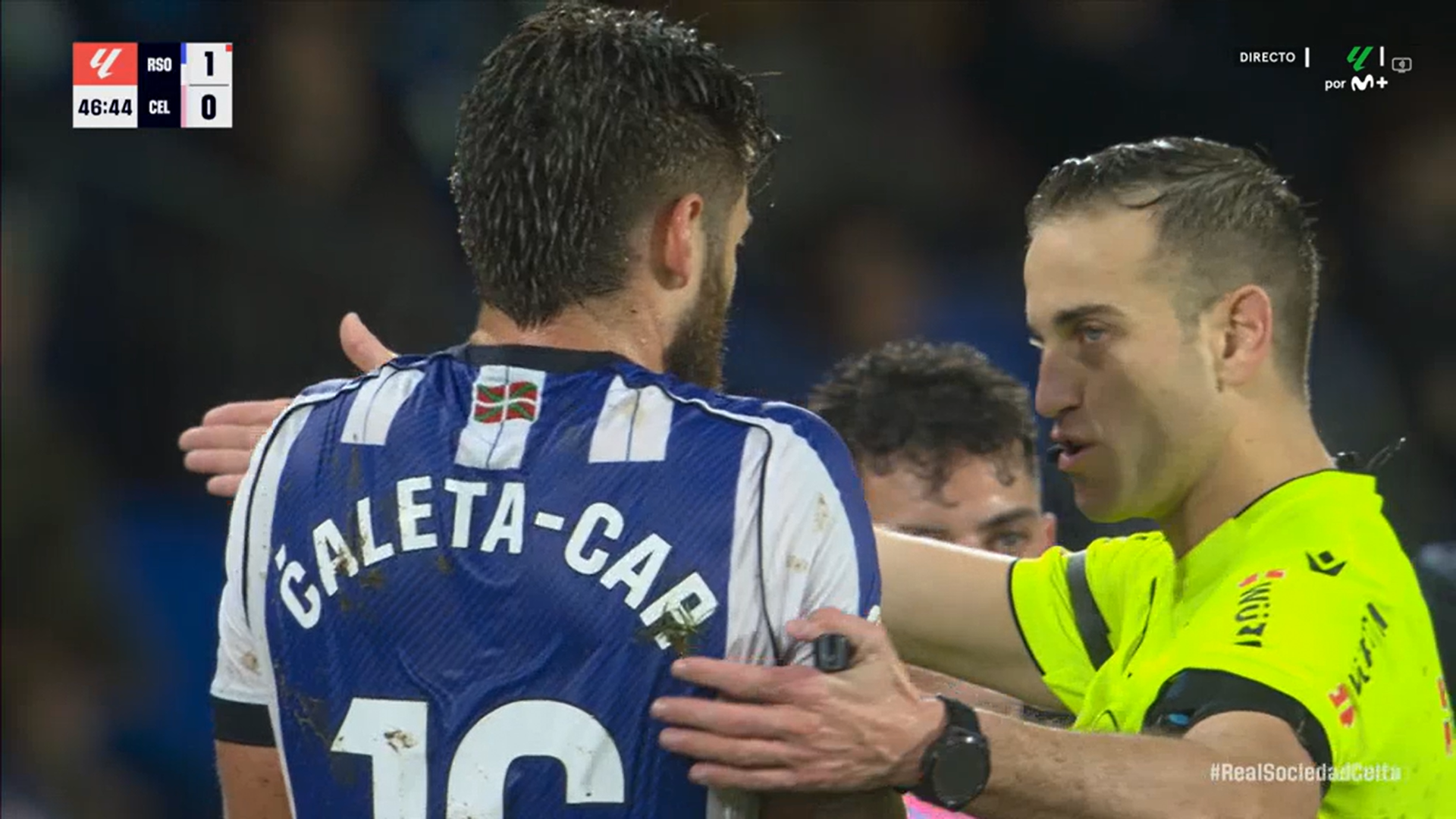 Mientras el futbolista gallego seguía doliéndose, desde el VAR llamaron al colegiado del choque en Donosti para que acudiera a ver la jugada al monitor. Ahí, el trencilla de Ciudad Real no lo dudó y le mostró la tarjeta roja directa al jugador croata, obligando a la Real Sociedad a disputar todo el segundo tiempo con un jugador menos y con un doble cambio de Matarazzo recomponiendo el equipo.
