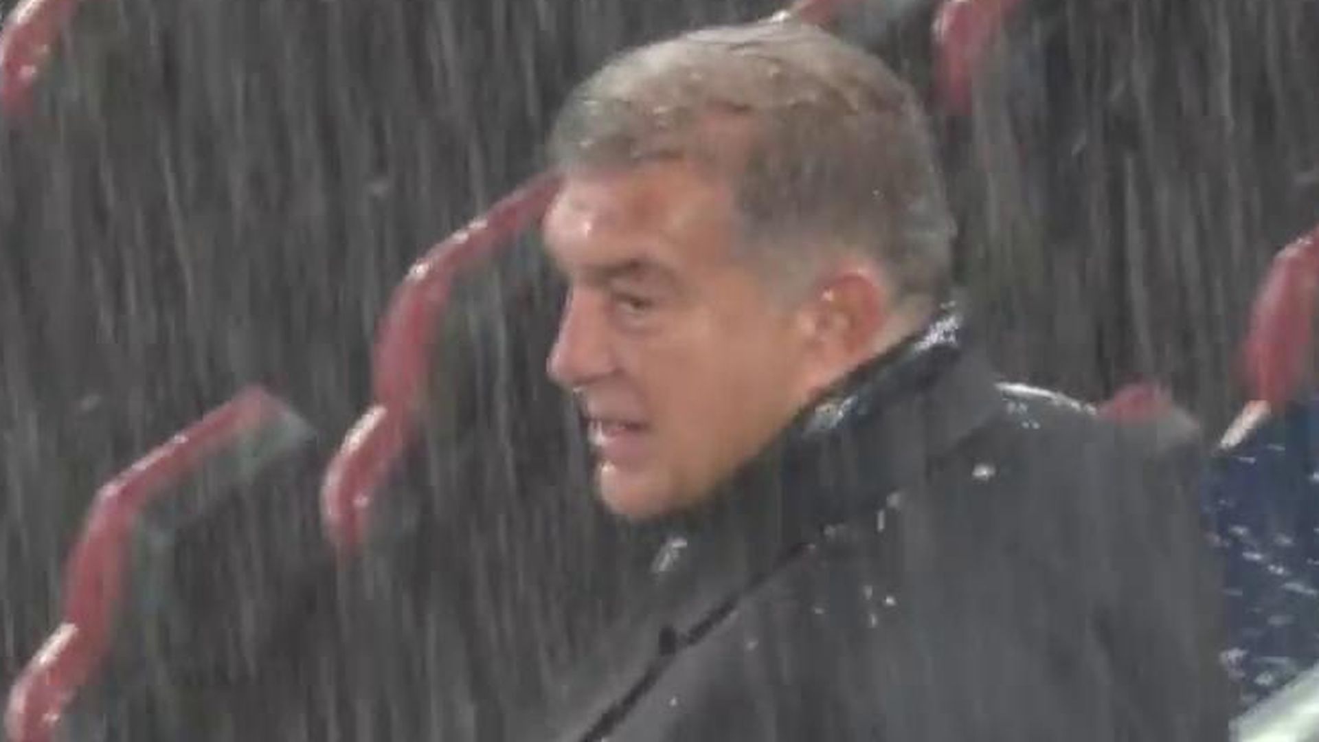 Joan Laporta, señalado por el diluvio en el Camp Nou